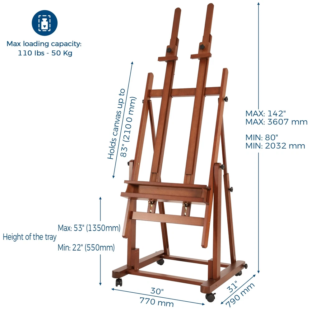 VISWIN Double Mast Extra Large H-Frame Easel, Hold Canvas up to 83", Tilts Flat, Adjustable Solid Beech Wood Heavy Duty Easel Stand with Large Storage, Movable Art Easel for Painting Adult, Artist - W [Premium Beechwood] This extra-large h-frame easel is crafted from German beech wood, ensuring sturdiness and durability. It's designed specifically for master artists and large studios. With an exceptional load-carrying capacity and an extendable double mast, you can create stunning masterpieces on wider and larger canvases. Comes with detailed instructions and a corresponding numbering system on the wood and hardware for easy assembly. [Flexible & Free Adjustments] This convertible painting easel is adjustable from horizontal to vertical with simple knob twists. It's 37" in height when in the horizontal position, perfect for painting techniques that require fluid pigments, like plaster and varnish paintings. By pulling up the center mast, you can put a larger canvas, while the metal ratchet helps to adjust the tray. Whether you want to stand or sit while working, this easel has you covered. [Spacious Double-Layer Tray] The double-layer tray provides ample storage space for all your painting supplies. We've widened the upper layer to accommodate frequently used supplies and increased the depth of the storage box to 4". This allows you to store more brushes, paints, and other art supplies, making your creations more convenient and organized. The multifunctional floor easel is undoubtedly a worry-free choice for artists of all levels. [Movable & Stable] The solid base measures 30" X 31" and equipped with 4 lockable, silent casters. You can easily press down on the brake pads to lock the casters in place and unlock them by pressing them up. Even individuals with little strength can easily move this heavy-duty easel stand without any harsh noises. The inclined vertical structure provides added stability to the easel, ensuring your artwork stays put while you work. [LIFETIME Guarantee] VISWIN is committed to creating products that can meet the needs of all those who love to paint and encourage people to enjoy the fun of creation. Shopping should be enjoyable, we provide every customer a lifetime guarantee. If you have any questions, we will try our best to satisfy you. Shipping We offer FREE shipping on all orders! We use a selection of shipping services such as UPS, FedEx, USPS etc. We only ship to the lower 48 states, no APO/FPO addresses or PO Boxes allowed. Local pickups and combined shipping options are not provided at this time. Return You can return a product for up to 30 days from the date you purchased it. Any product you return must be in the same condition you received it and in the original packaging. Please keep the receipt. Payment We accept payment by any of the following methods: PayPal Please pay as soon as possible after winning an auction, as that will allow us to post your item to you sooner! Feedback Customer satisfaction is very important to us. If you have any problem with your order, please contact us and we will do our best to make you satisfied. Contact Us If you have any queries, please contact us via ebay. We usually respond within 24 hours on weekdays. Please visit our eBay store to check out other items for sale! Thank you for shopping at our store.