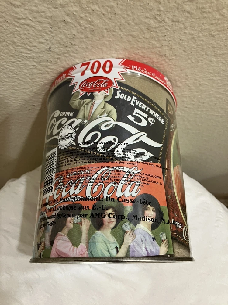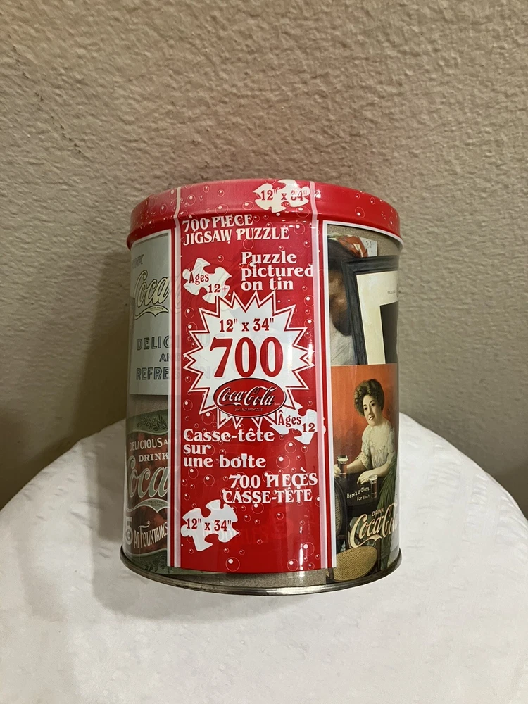 VTG 1993 Sealed Coca Cola 700 Piece Jigsaw Puzzle Ads Tin USA Puzzle 12"x34" Tin 6" tall, 5" wide and long Return Policy: 30 days, buyer pays shipping