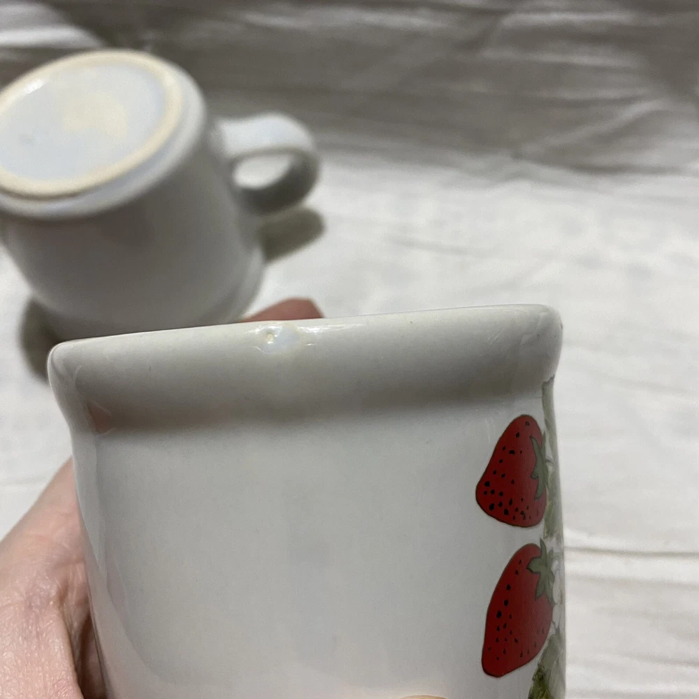 Darling strawberry set. Really nice condition. See photos Selling as is, as found. Condition is as shown in photos. You are purchasing the item that is in the pictures. The pictures are part of the description. If you have questions please contact me before bidding and before you have won the auction. I am more than willing to help answer any questions or send more pictures prior to the auction ending. Only item in title and description is included in sale. Nothing in background included. Colors shown can very from computer to computer Thank you! π