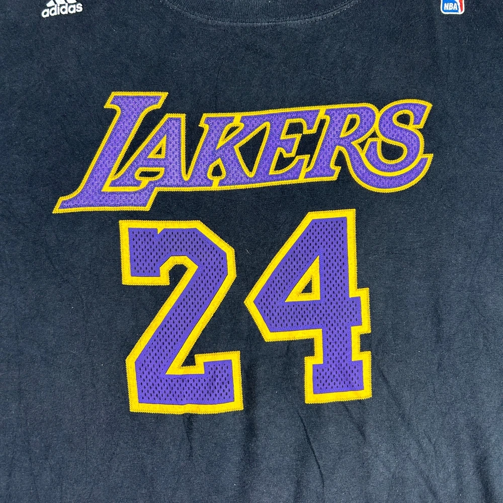 Show your love for the Los Angeles Lakers and the late Kobe Bryant with this vintage Adidas Black Mamba #24 crewneck t-shirt. The shirt features Bryant's iconic number and is officially licensed by the National Basketball Association (NBA). It is made of high-quality materials and has a comfortable fit, making it perfect for regular wear. This shirt is a must-have for any basketball fan and is great for wearing to games or just around town. It is available in men's size 2XL and is made in Honduras. Get your hands on this piece of fan apparel and show your support for the Lakers and Kobe Bryant. SKU: FB-06-61