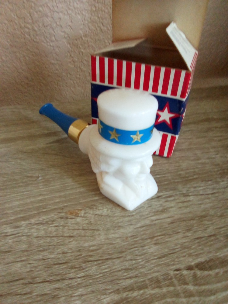 The VTG Avon Leather After Shave Presidential Decanter featuring Abraham Lincoln is a collectible bottle that holds 4 fl oz. Made by Avon, this decorative piece is ideal for collectors of unique and historical memorabilia. The leather detailing adds a touch of elegance to this special decanter, making it a stylish addition to any collection. box is open bottle is full