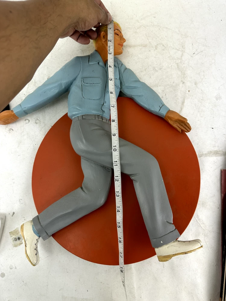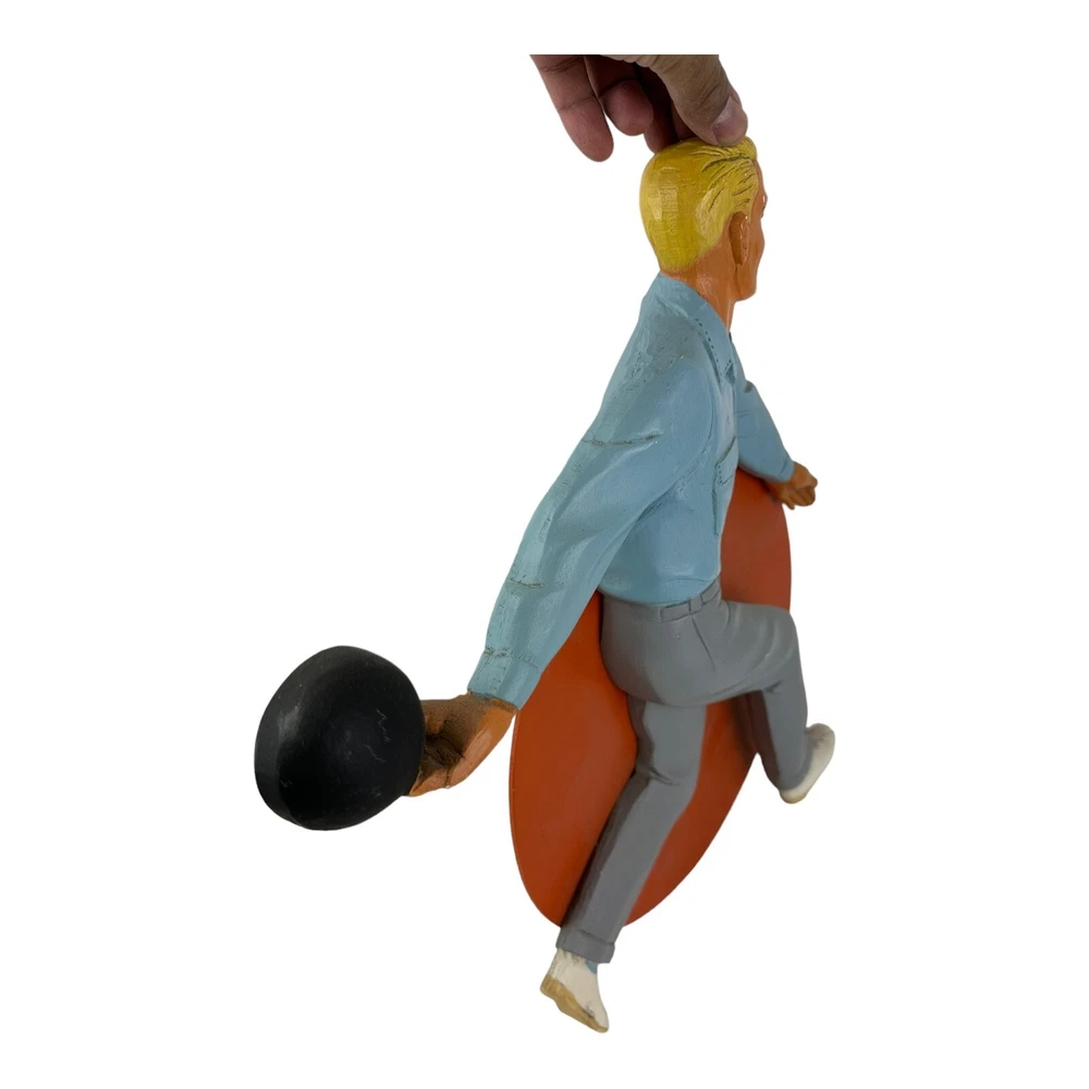This vintage wood sign featuring a man bowling is a must-have for any collector of retro advertising. With its classic 1950's-60's Rockabilly style, it's a great addition to any store display or collection of merchandise and memorabilia. The sign's brand is unknown, but its Type of Advertising is clear - it's a sign designed to promote bowling, a popular activity during the mid-20th century. It's perfect for those who appreciate the history and style of advertising from that era. The date of creation is also specified, making it a valuable piece of collectible advertising.
