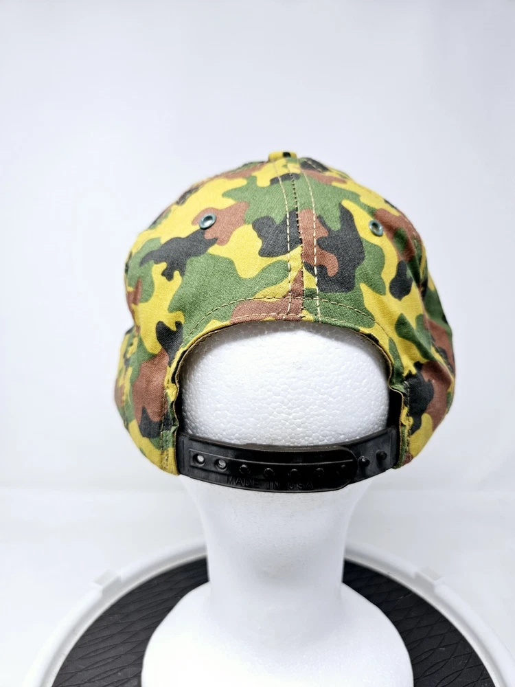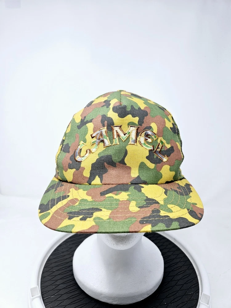 Signed: No Theme: USA, 90s Material: Cotton Fabric Type: Canvas Features: Adjustable, Breathable, Lightweight, UV Protection, Wide Brim Brand: Camel Season: Fall, Spring, Summer, Winter Occasion: Casual, Party/Cocktail, Travel, Workwear Department: Unisex Adults Country/Region of Manufacture: United States Pattern: Camouflage Style: Snapback Vintage: Yes Size: One Size Color: Multicolor