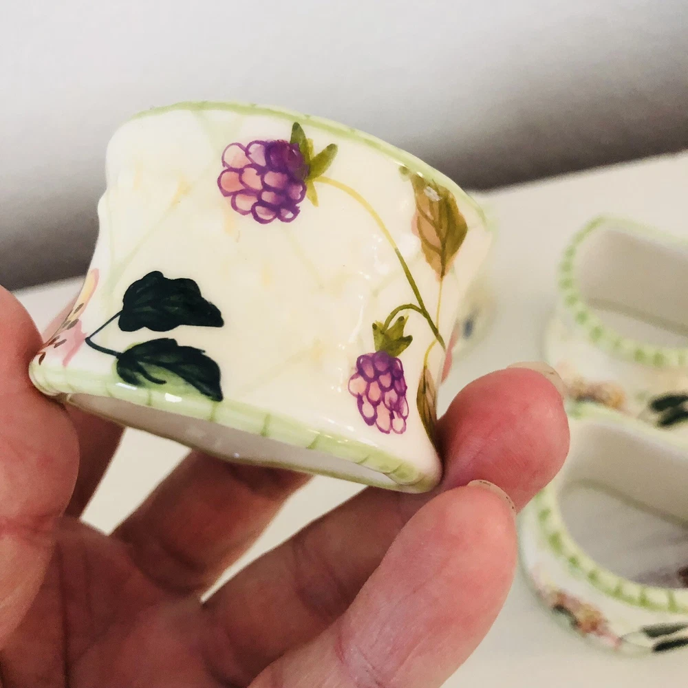 VTG Ceramic Napkin Ring Holders Tracy Porter Evelyn Collection Floral Cottage