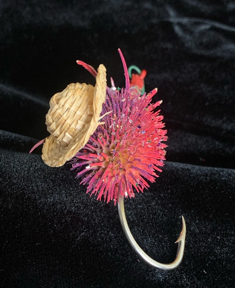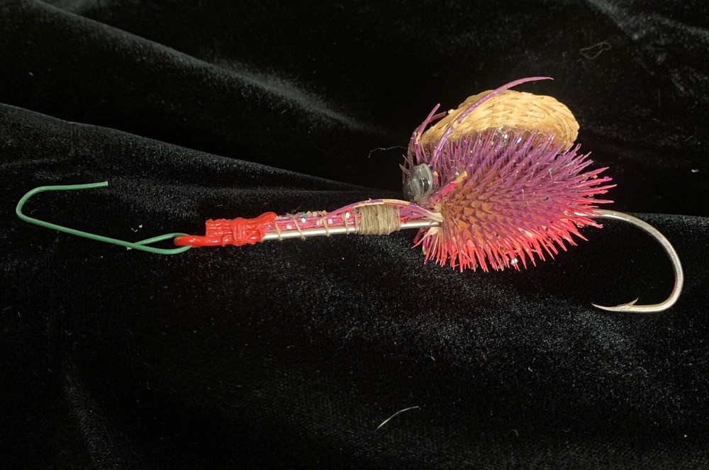 Add a touch of whimsy to your holiday decor with this unique VTG Fishing Lure with Hook Christmas Ornament. Artfully handmade, this charming piece combines a love for the outdoors with festive spirit. Its abstract, nautical pattern and vibrant purple hue make it a delightful addition to any Christmas collection. Crafted from a mix of materials including wood, resin, plastic, and metal, this medium-sized ornament is a testament to skillful handcrafting. Perfect for anyone who appreciates a bit of humor and personality in their seasonal decorations, it's designed for adult recipients but suits a myriad of tastes and styles.