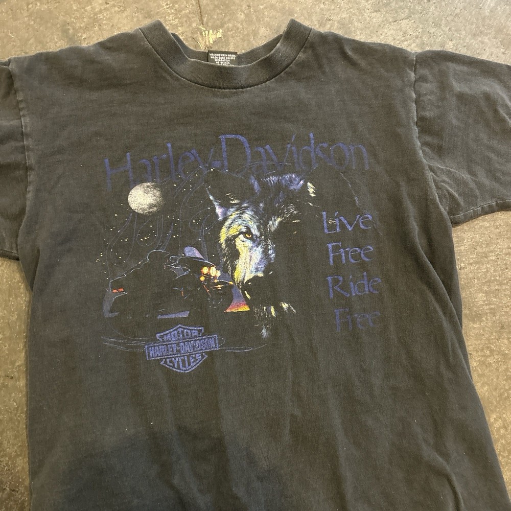 VTG Harley Davidson Graphic T-Shirt “Live Free Ride Free” Size M