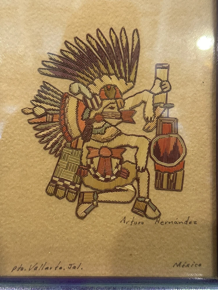 VTG Mexican Folk Art Arturo Hernandez SIGNED Straw Art Puerto Vallarto Jalisco