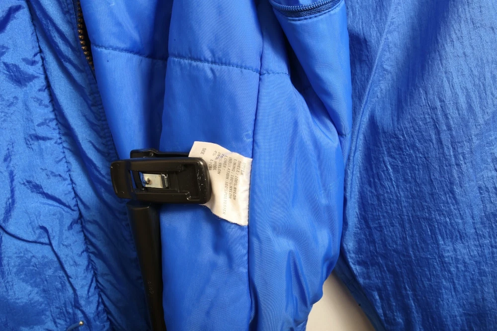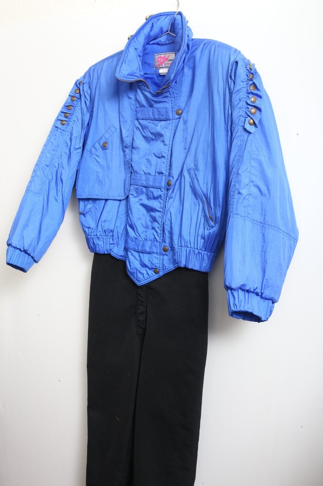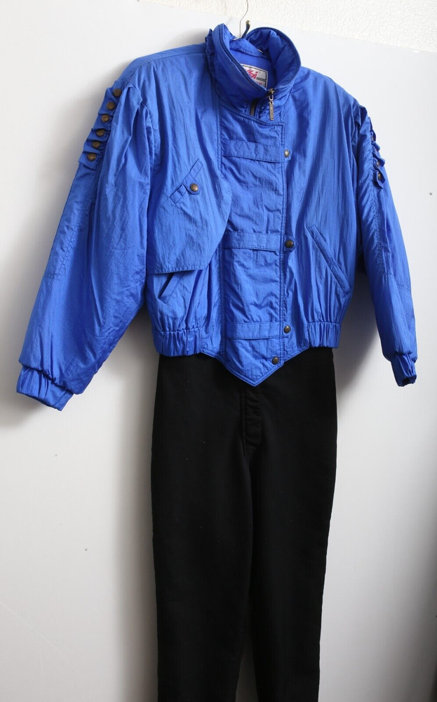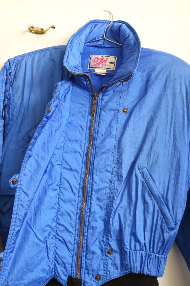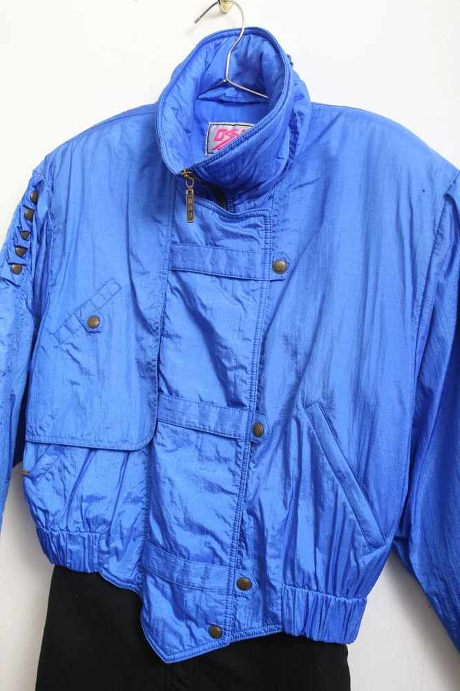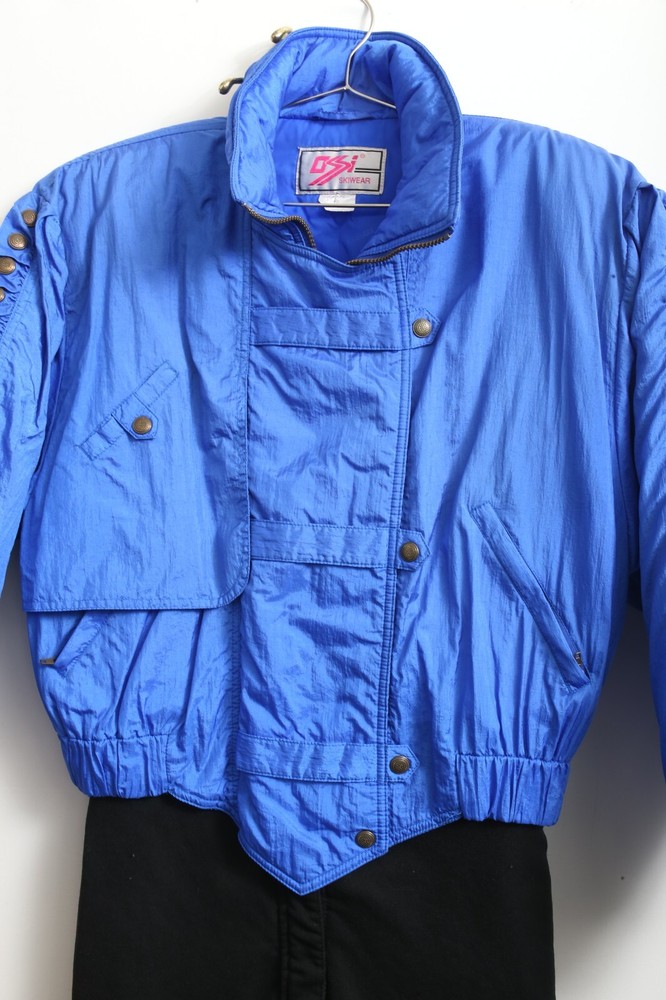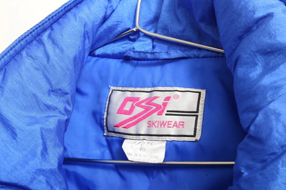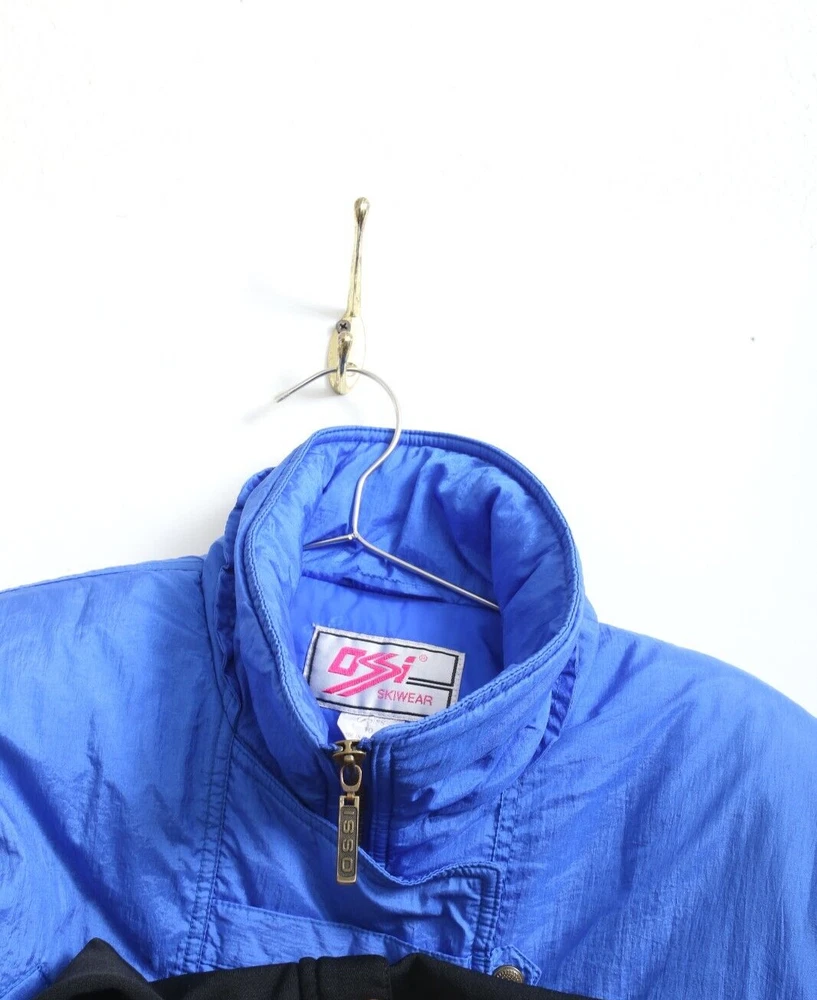This vintage Ossi one piece ski suit is the perfect addition to any winter or fall wardrobe. Made with softshell fabric and insulated with polyester, it features a classic fit and a solid blue and black pattern. The long sleeves and collared neckline provide both warmth and style, while the quilted accents and 1/4 zip add a touch of designer flair. Ideal for travel, casual wear, or workwear, this one piece ski suit is a limited edition throwback to the 80s. The zippered closure and bodywarmer make it both comfortable and functional, making it a great choice for any occasion. Available in women's size 10 and made with nylon outer shell material and lining material, this ski suit is a must-have for any classic or retro enthusiast.