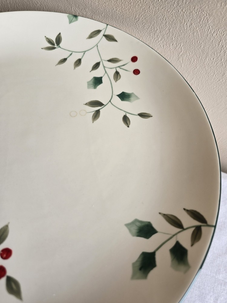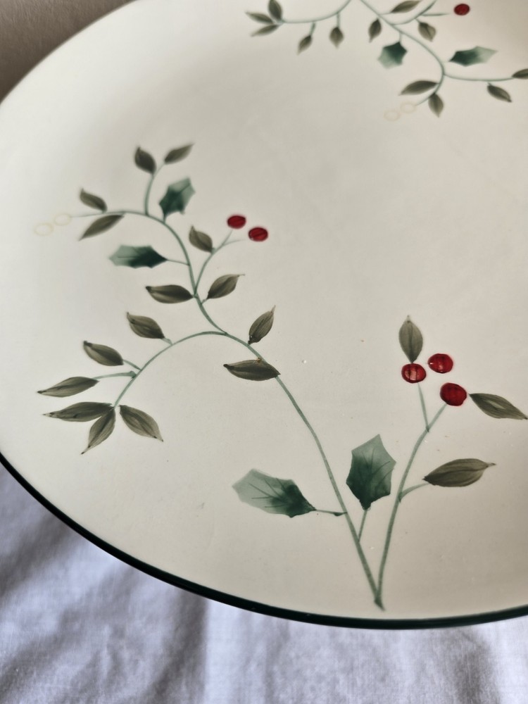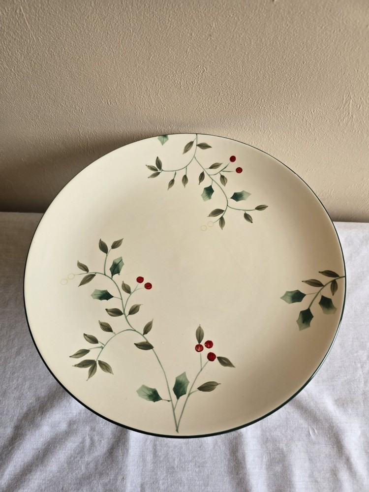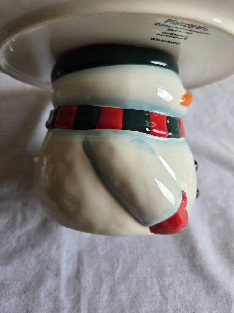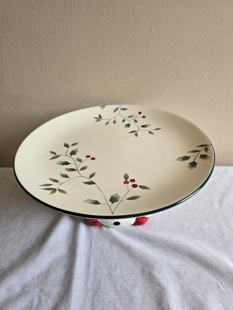 HomeVTG Pfaltzgraff Winterberry Footed Ceramic Snowmen Cake Plate for Christmas