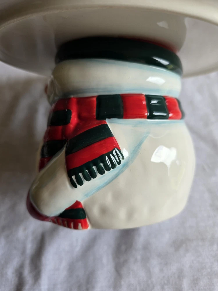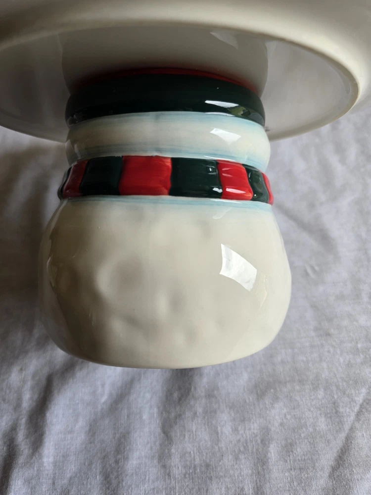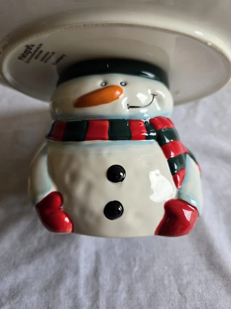 Finish:GlossyBackstamp:PrintedItem Diameter:11 inType:Cake StandTime Period Manufactured:2010-2019Product Line:unknownProduction Technique:PotteryOccasion:ChristmasMaterial:CeramicAntique:NoColor:MulticolorYear Manufactured:2010Handmade:NoCountry/Region of Manufacture:ChinaShape:RoundProduction Style:Art PotteryPattern:snowmanBrand:PfaltzgraffNumber of Items:1Vintage:NoFeatures:Decorative, Easy to CleanTheme:ChristmasItem Height:5-1/2 in
