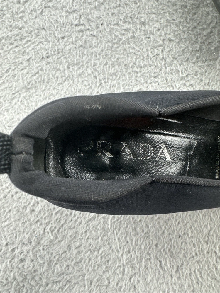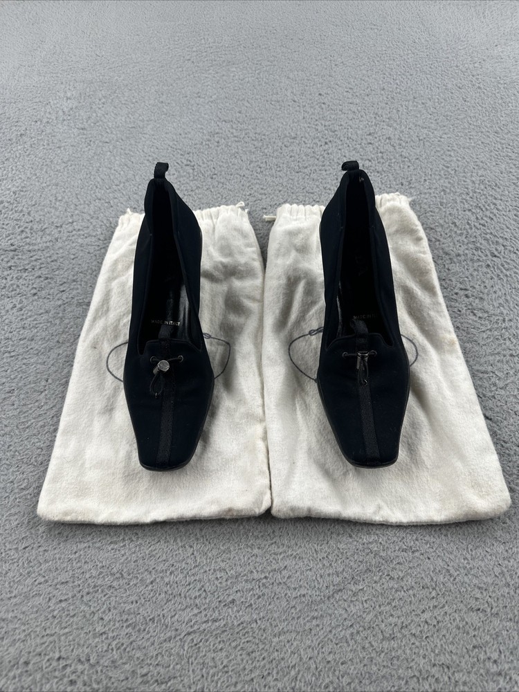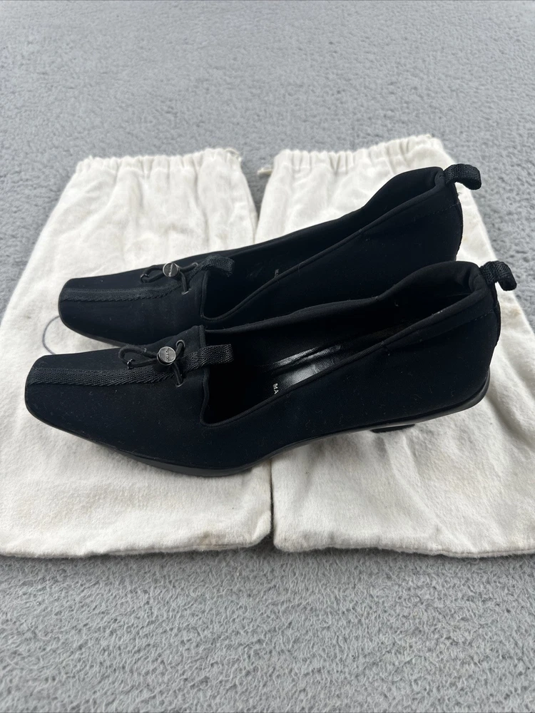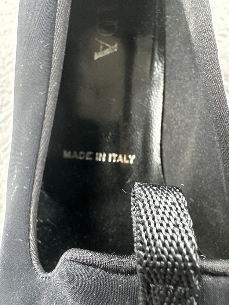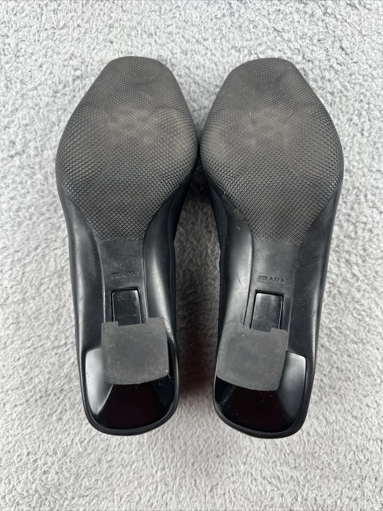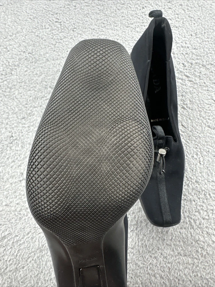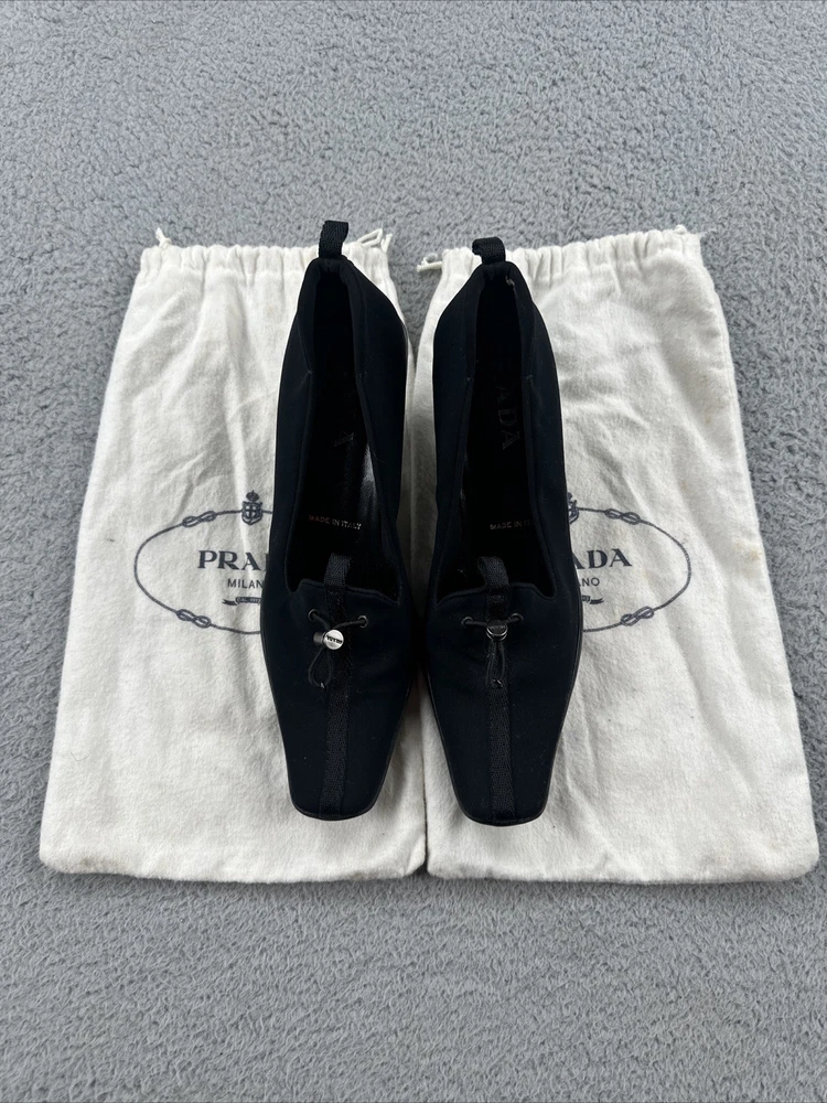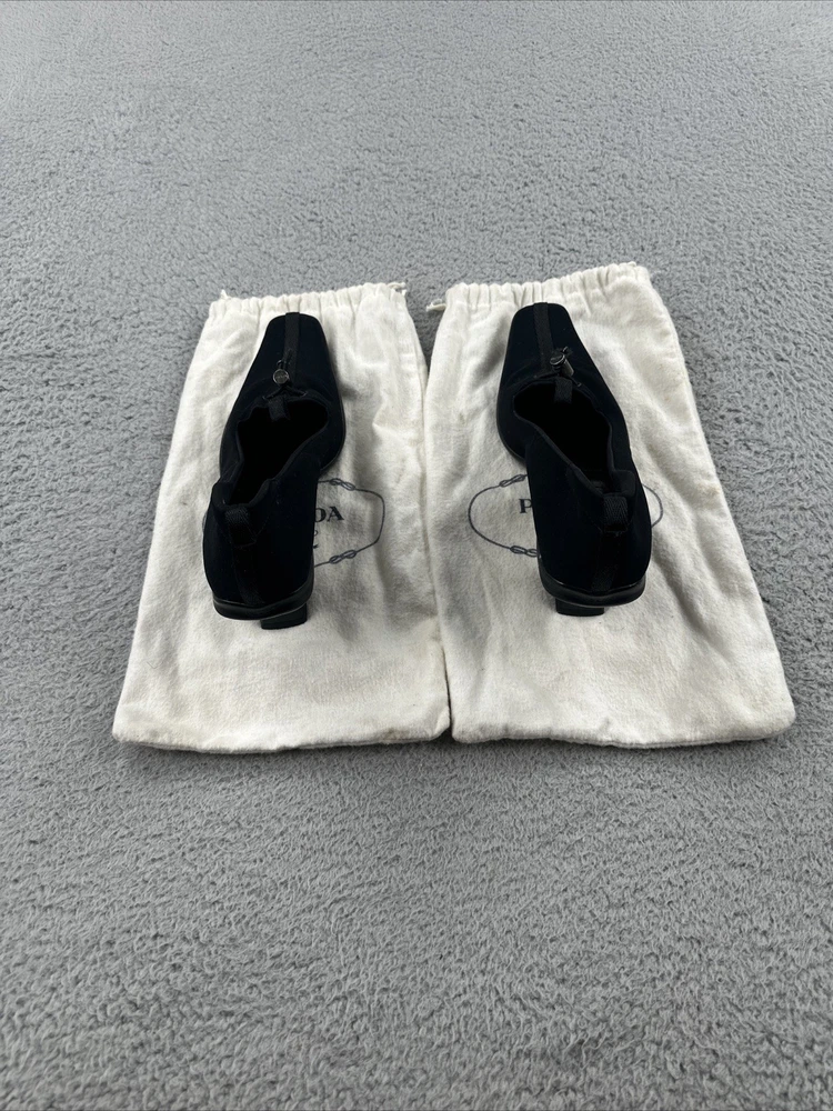 These vintage Prada heels from the 2000s are a stylish and rare find for any fashion-forward woman. Made in Italy, these black heels exude a sense of high fashion with a Y2K designer flair. The size 39 1/2 translates to a US women's size 8.5, making them perfect for special occasions like cocktail events. With their original design and high-quality craftsmanship, these Prada heels are a unique addition to any wardrobe for those who appreciate vintage luxury fashion.