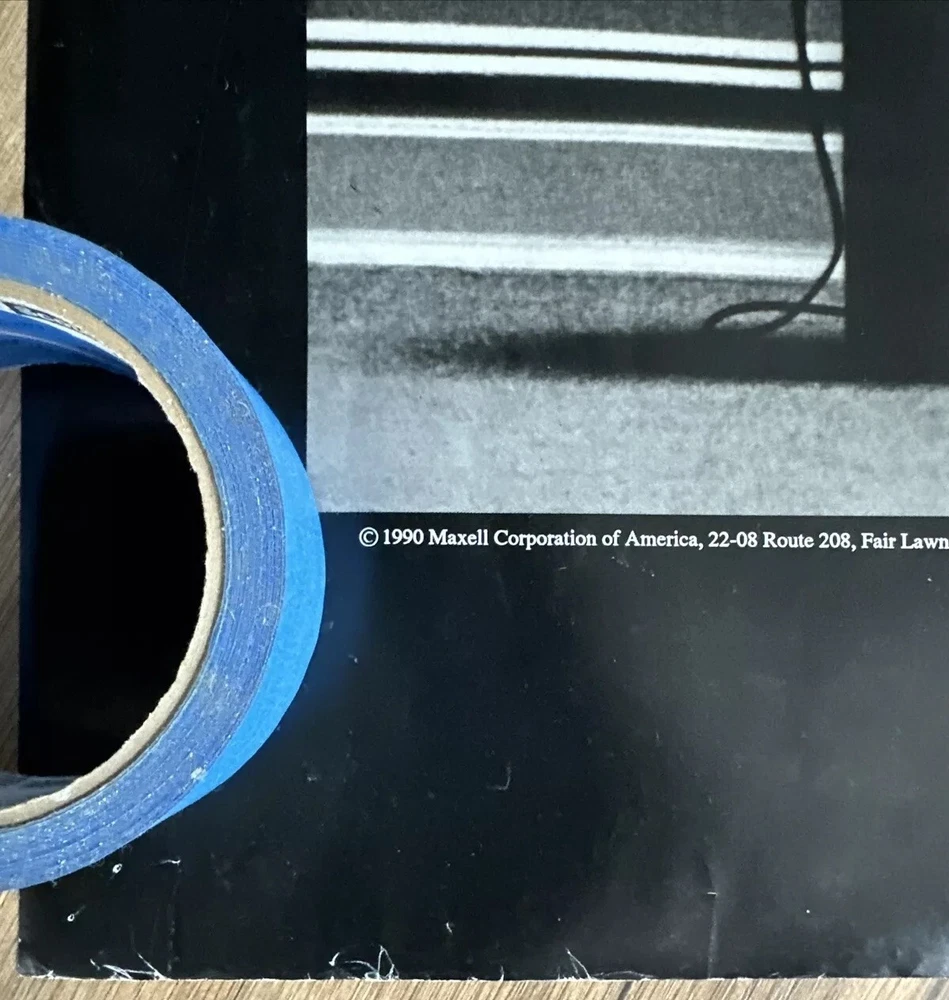 This is an original 1990 poster. It’s an ad for Maxell Cassette Tapes. Blown Away Guy. “Maxell the Tape that Delivers Higher Performance” in bottom right corner. Good condition, but has a minor tear on upper right edge and some minor white wrinkles around edges. See photos for close-up. Could be custom-matted to exclude these minor white marks and tiny corner pinholes, if framing, as they are just around the 1”edge of poster. See photos. The central artwork/photo part is in very good condition. It’s been rolled up for 34 years and will ship rolled in a tube. Measures. 20” x 39.5”.