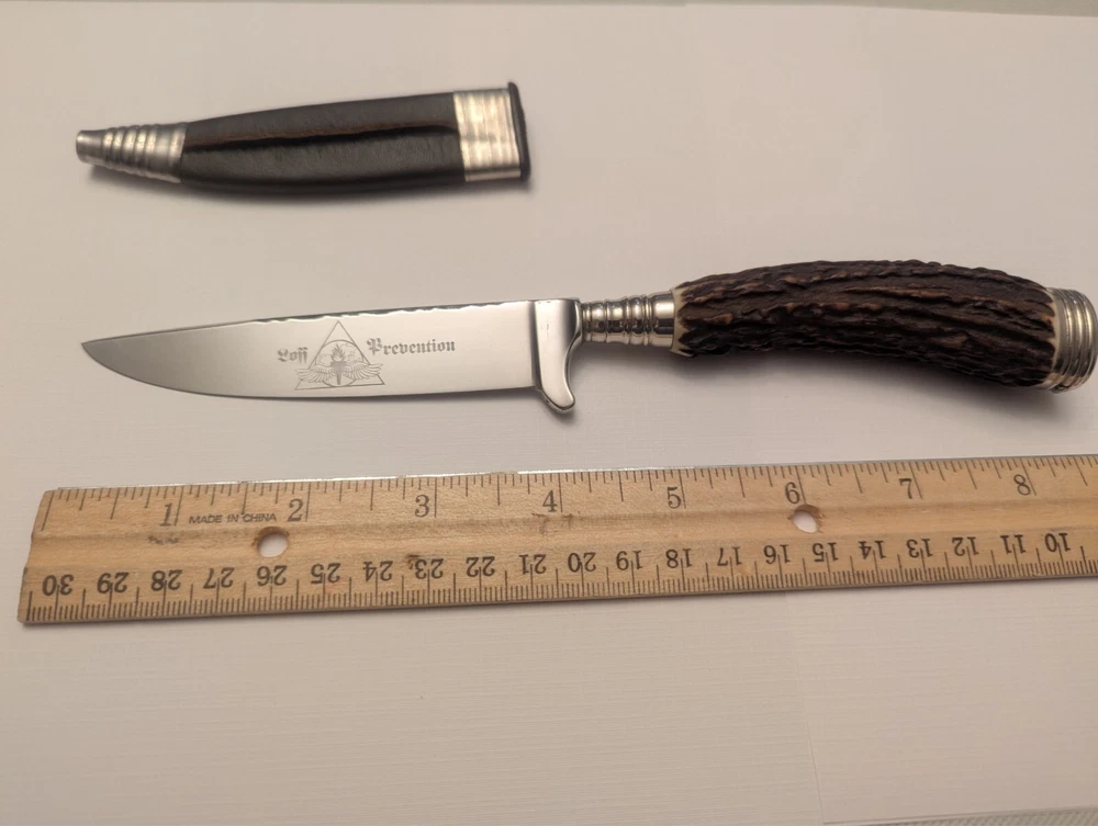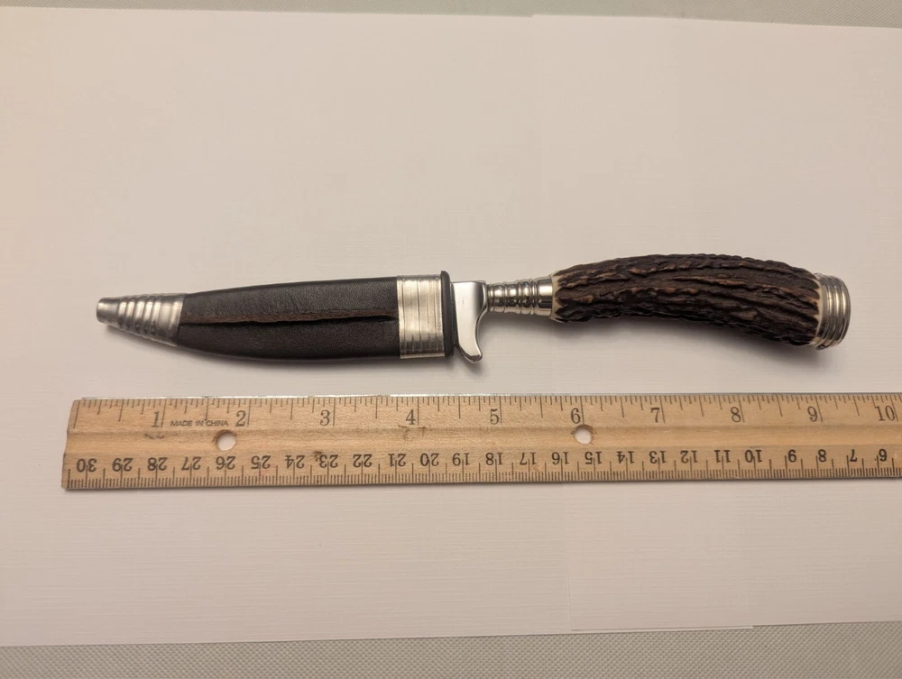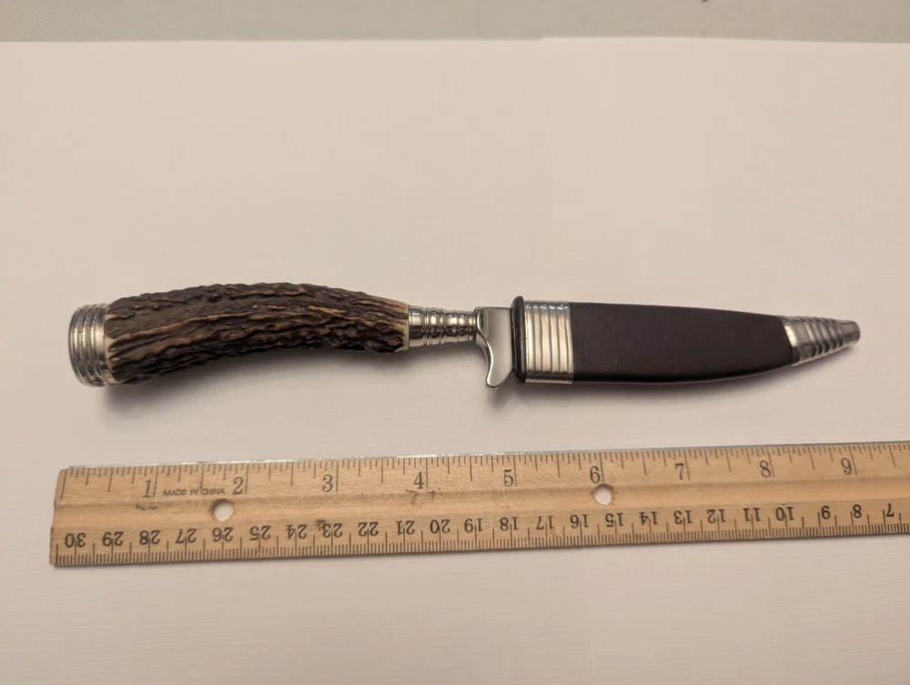 VTG RARE GERMAN HUBERTUS SOLINGEN ROSTFREI HUNTING BOOT KNIFE STAG HORN HANDLE