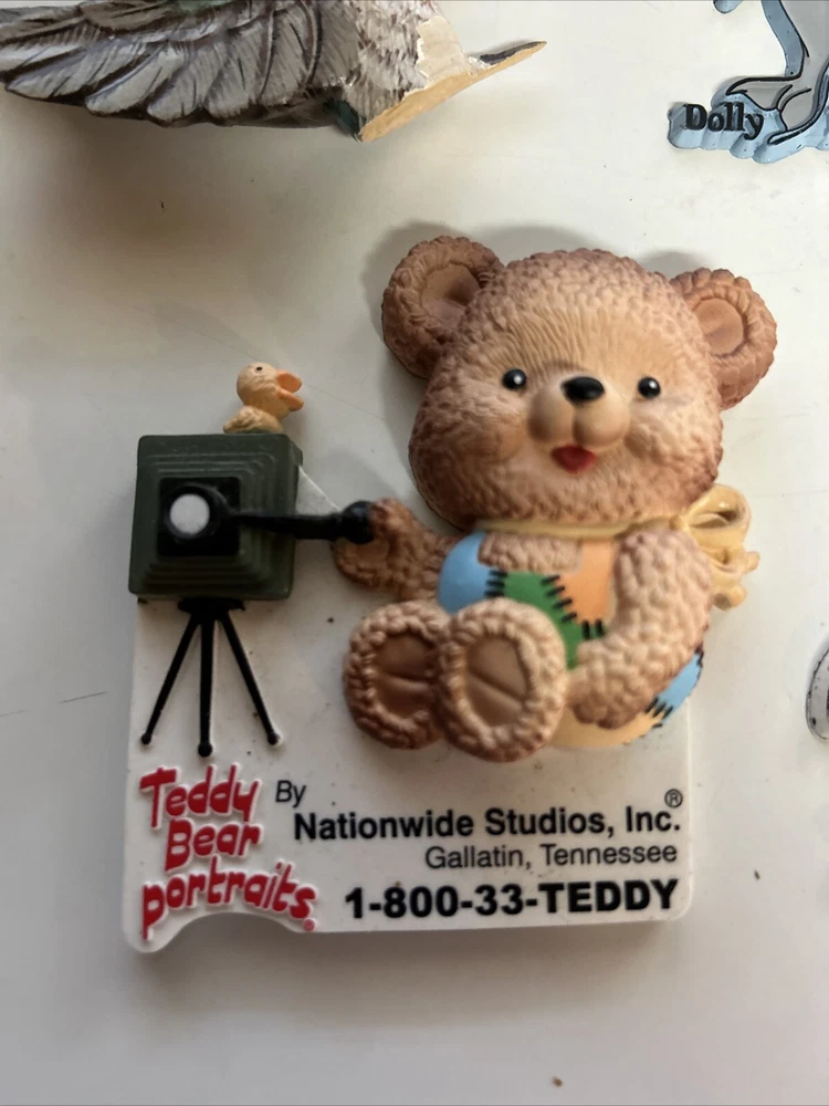 Add a touch of nostalgia to your fridge with these vintage refrigerator magnets. Featuring cute birds and bears, these magnets are made of wood, glass, and plastic for durability. Perfect for collectors or anyone who wants to add some charm to their kitchen. This set includes four fridge magnets and one cardinal stained glass ornament . Get your hands on these unique magnets from the 1980s and bring a bit of whimsy to your home. Great condition