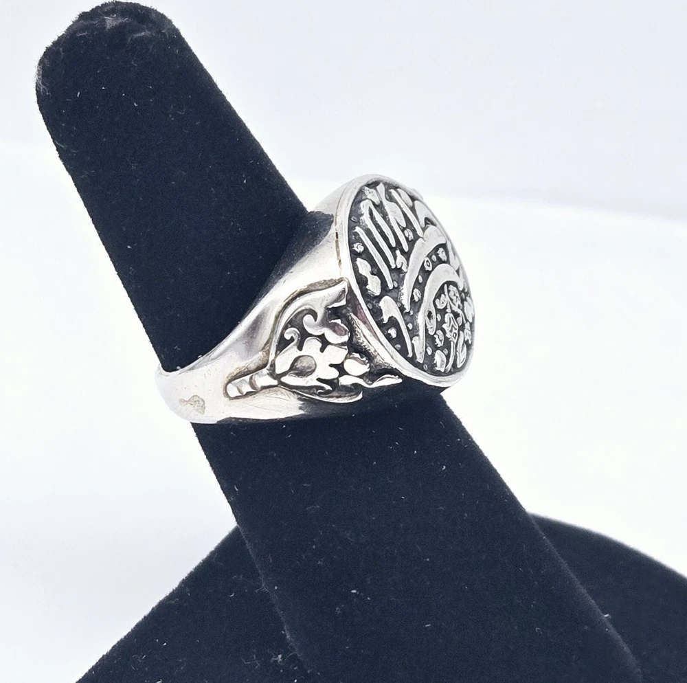VTG Sterling Silver Signet Arabic Calligraphy Script Islam Ring - Size 5 - 7.8g