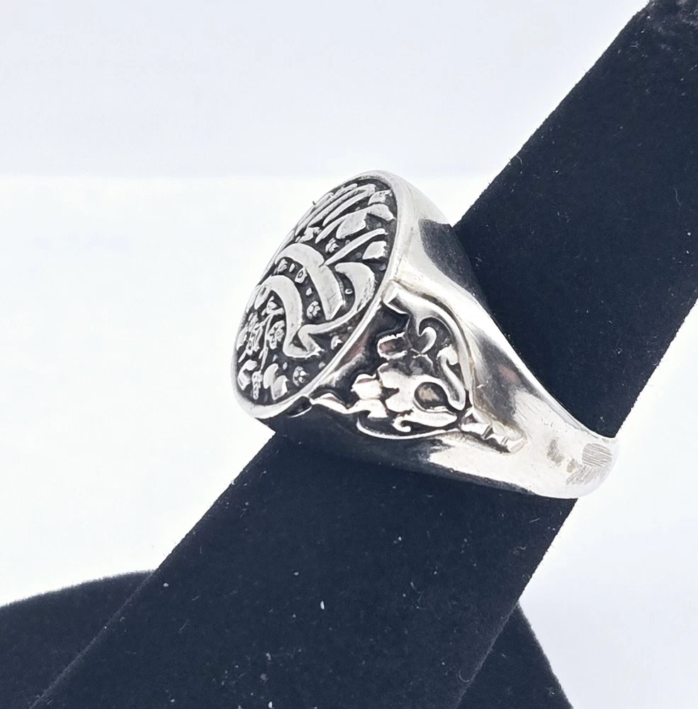 HomeVTG Sterling Silver Signet Arabic Calligraphy Script Islam Ring - Size 5 - 7.8g