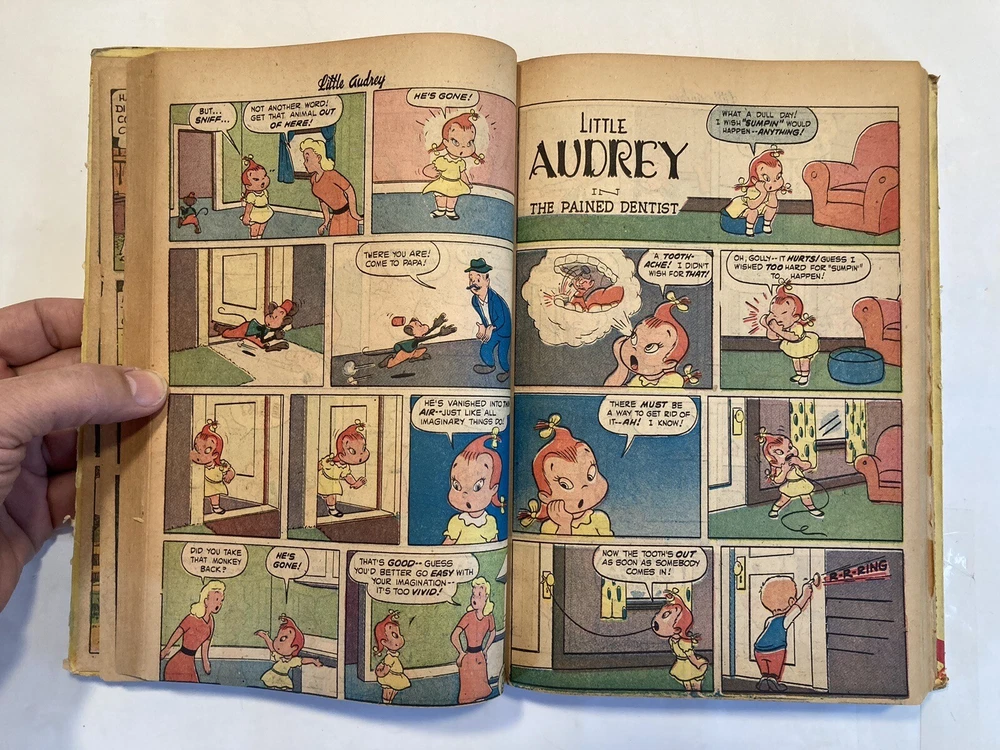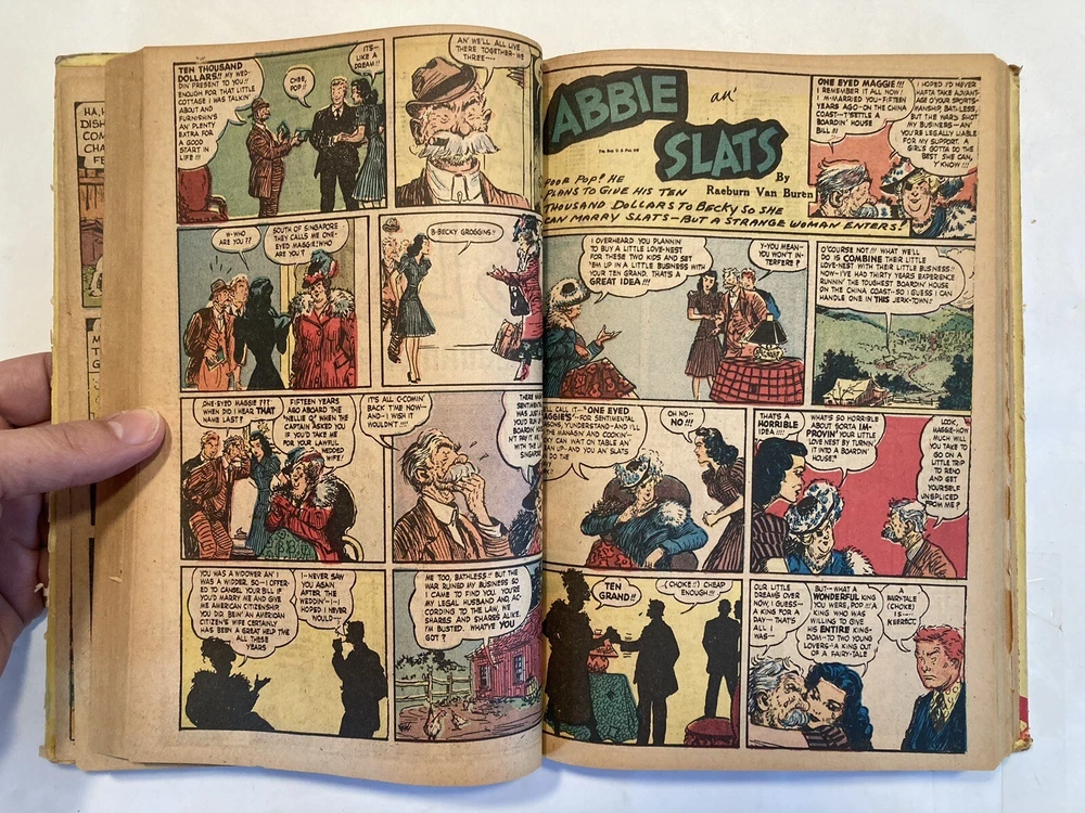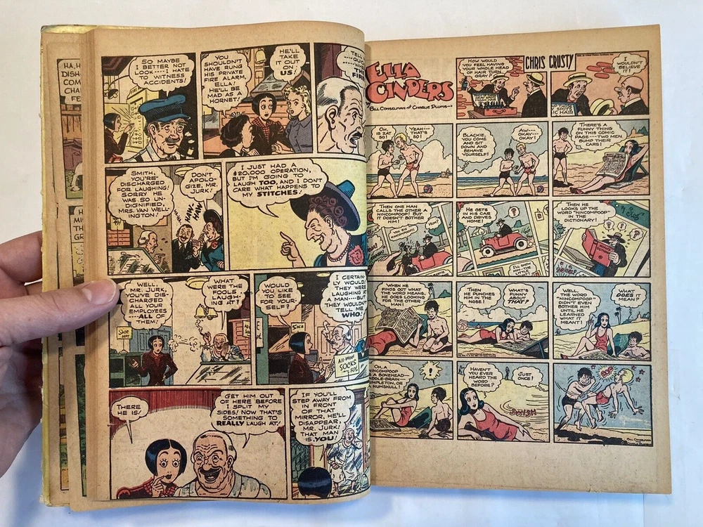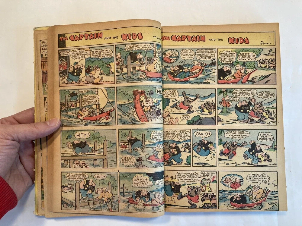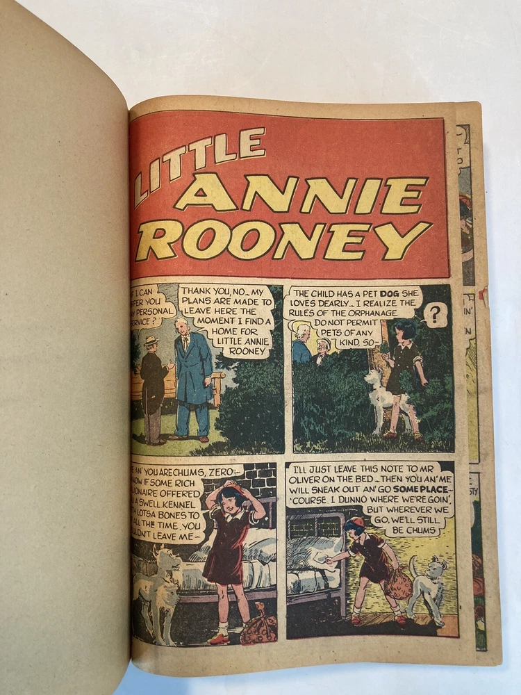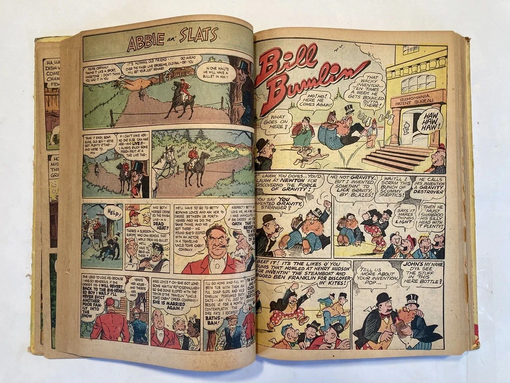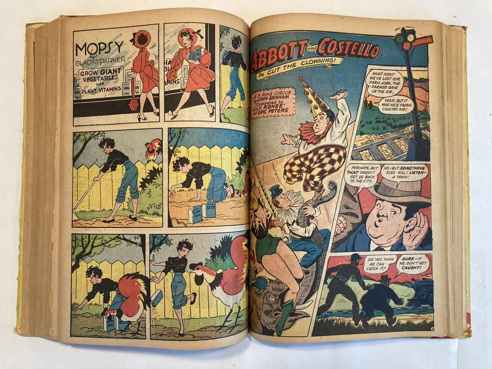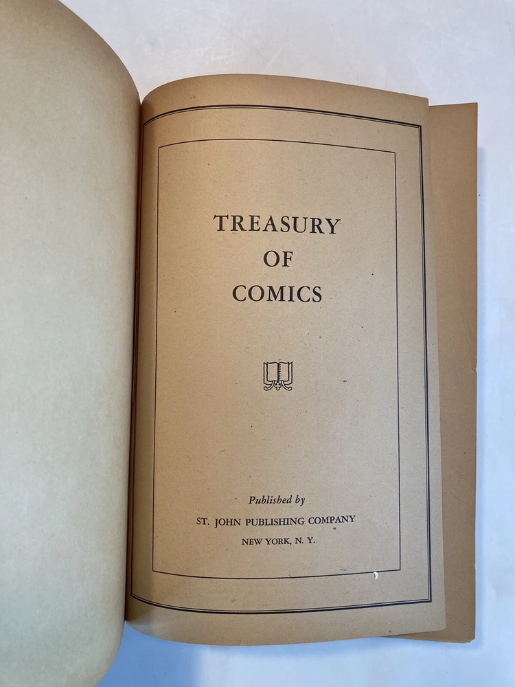 Vintage A Treasury of Comics #1 Hardback Book in Full Color- Copyright 1948. Published by St. Johns Publishing Company, New York, NY. This RARE book is over 500 pages of 1940's Comics and Comic Strips. Book features such classic characters as Mopsy, Abbott & Costello, Little Audrey, Some Punkins, Virgil, The Captain and the Kids, Little Annie Rooney, Elmo, Jane Arden, Bill Bumlin, Ella Cinders, Gordo, Hap Hopper, Iron Vic, Jim Hardy, Abbie an' Slats and More! Book is in Poor to Acceptable Condition with several loose or torn pages, missing spine, writing on cover, page yellowing and edge wear. Please see pictures for Condition Concerns. Still a Very Hard to Find and Collectible Comic Item. Ships Nationwide with USPS Priority Mail. International Shipping available with eBay's Global Shipping Program.