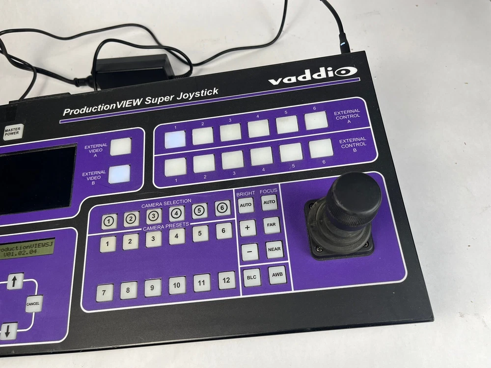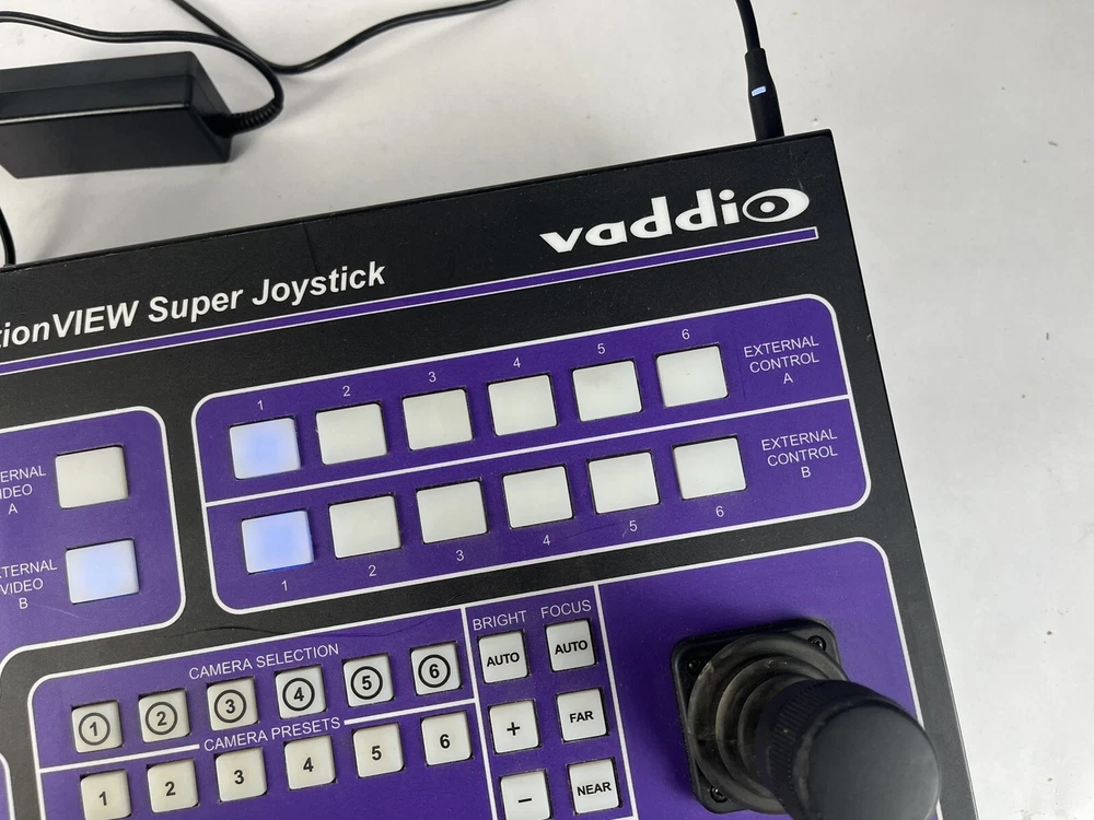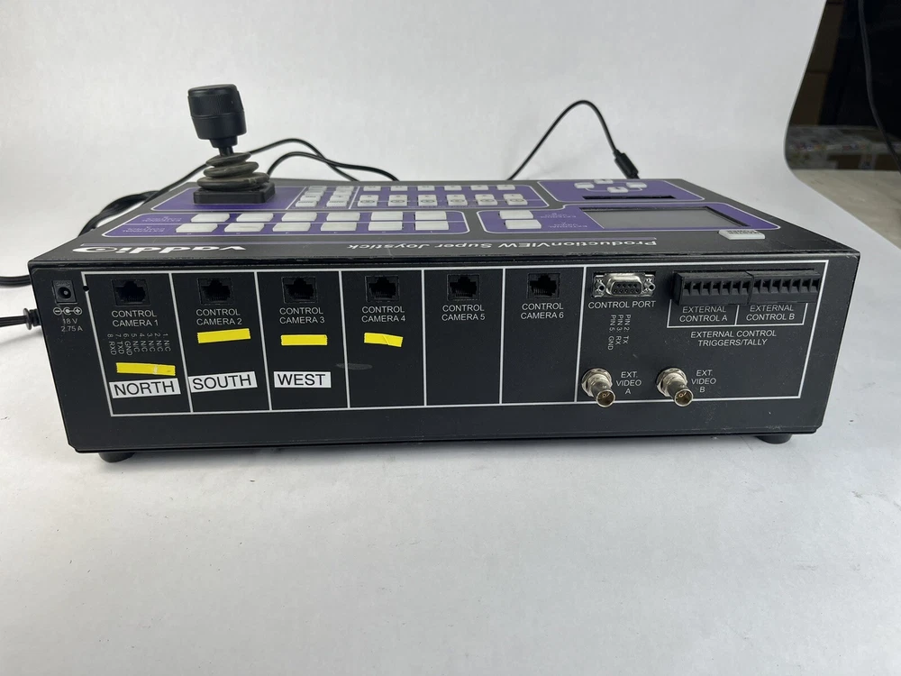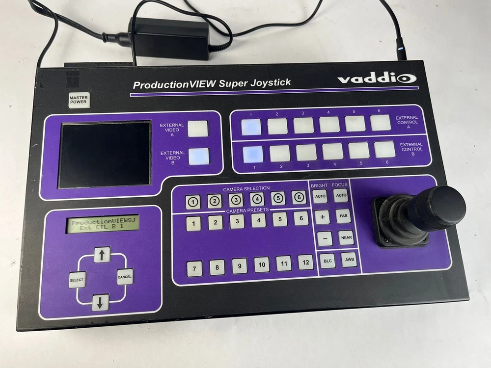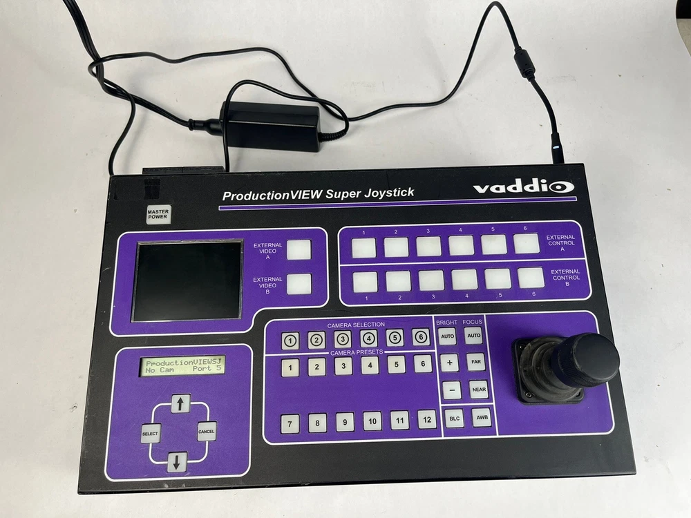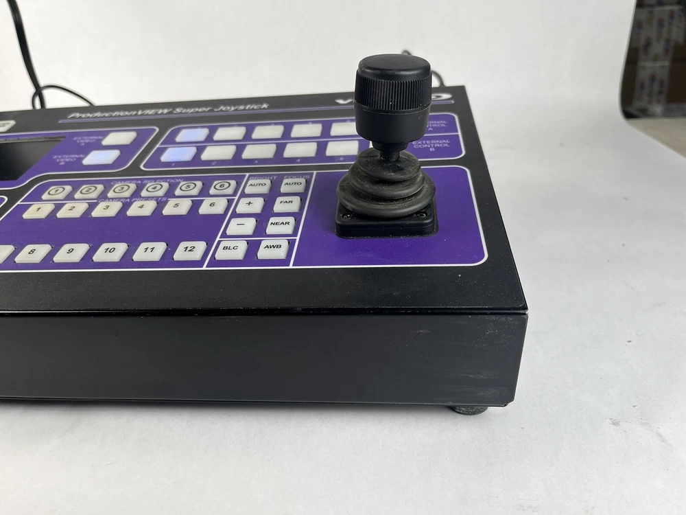 Connectivity:S-VideoBrand:VaddioForm Factor:Console/TabletopModel:Vaddio ProductionView Super Joystick 999-5300-000Product Line:Vaddio ProductionViewNumber of Outputs:1Country/Region of Manufacture:UnknownCompatible Mount:Rack MountMPN:999-5300-000UPC:Does not applygtin13:Does not applyFeatures:DisplayVideo Format:SDType:Controller