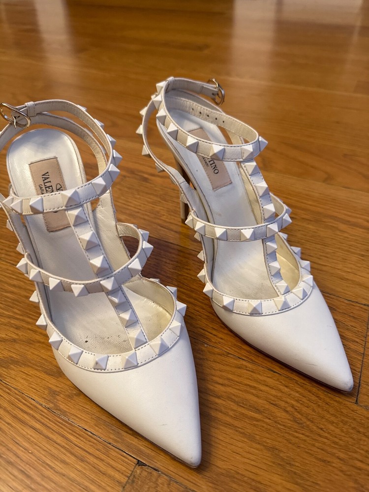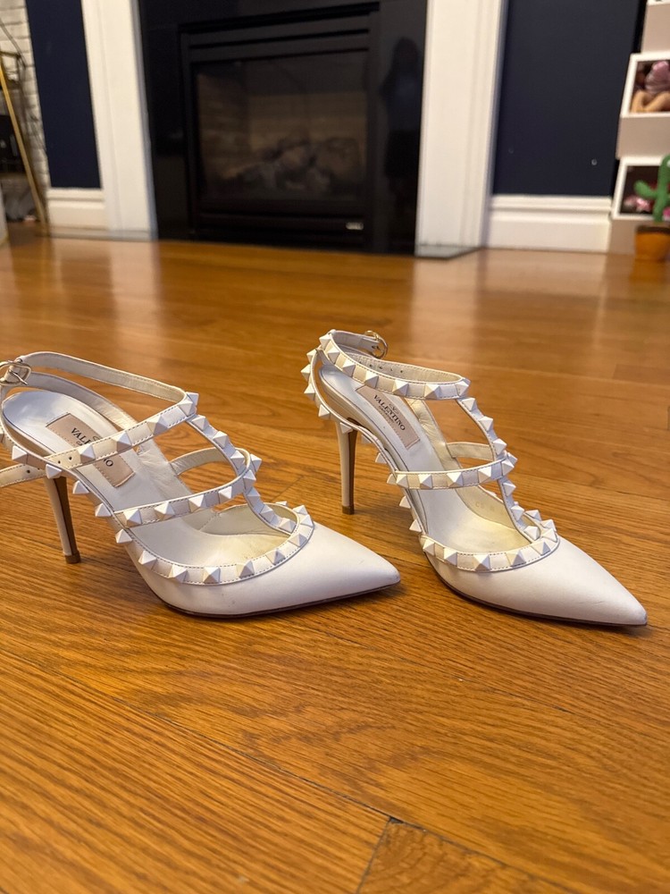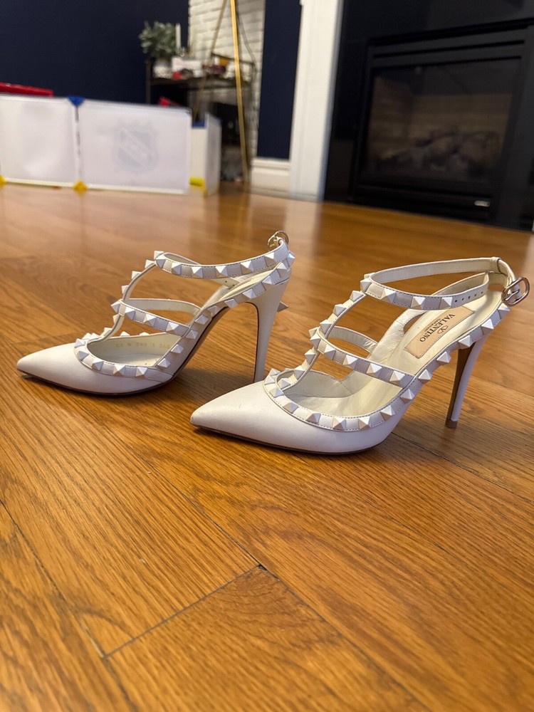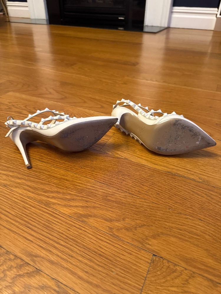 These Valentino Rockstud Heels in off-white are absolutely stunning! The perfect mix of elegance and edge, they instantly elevate any outfit. The 36.5 fits true to size and feels surprisingly comfortable for heels this chic. The iconic stud detailing adds just the right amount of glam without being overpowering. I love how versatile they are - equally perfect with jeans for brunch or a little black dress for date night. The quality is impeccable, exactly what you'd expect from Valentino. After wearing them all night, my feet weren't screaming to take them off - a miracle for designer heels! Already planning my next outfit to show them off again. Worth every penny for this timeless investment piece.