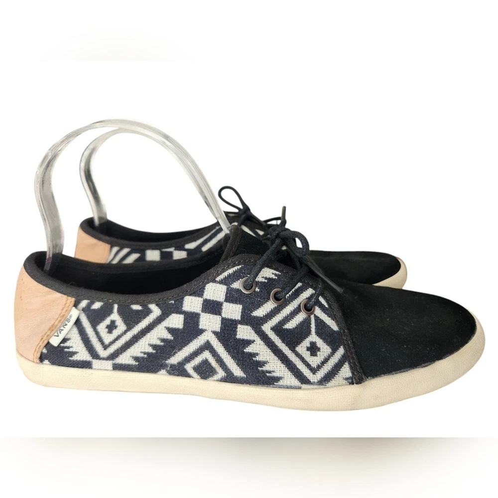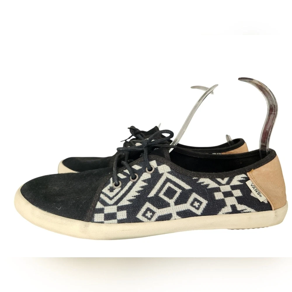 Tazie Batik black white print Vans Sneaker Great condition. worn and few times, no major signs of wear. size 10 rare and discontinued style A new take on Vans' classic shoes, the Tazie Women's Shoe features a canvas upper with leather details, a batik-inspired print, a removable UltraCush Eco footbed, and a super-flexible rubber sole for lightweight comfort. Washed canvas upper Removable UltraCush Eco footbed Flexible rubber ousole