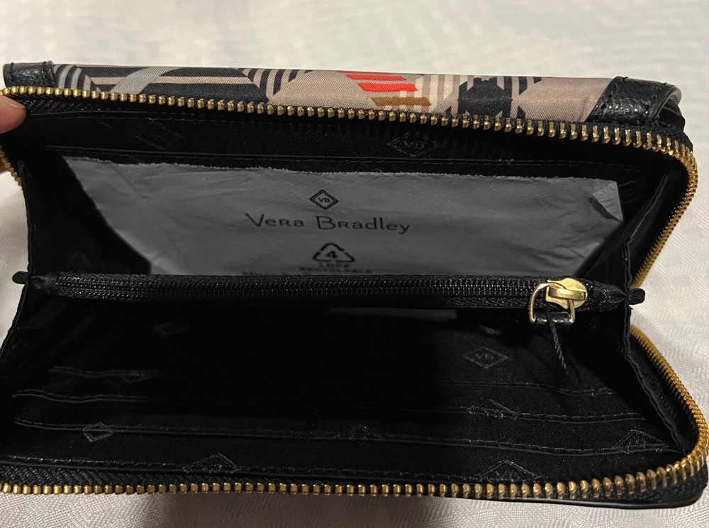 This Vera Bradley Ultimate Wristlet Sofia Plaid wallet is a must-have for any fashion-forward woman. With a beautiful plaid pattern and a colorful multicolor design, this wallet is made of high-quality leather and is perfect for everyday use. It features a cardholder style, with plenty of space for all your credit cards, and measures 7.5 inches in length and 4.5 inches in width. The Sofia wallet is a modern and designer piece, perfect for any occasion. It is not vintage and comes with a range of features, including a brand logo. This wallet is ideal for women who are looking for a stylish and functional accessory to complete their outfit.