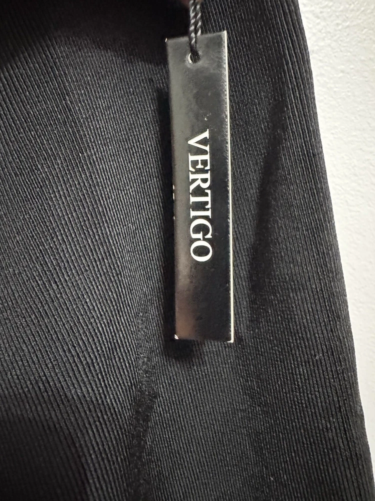 Elevate your wardrobe with this chic and stylish Vertigo black skirt. The skirt is perfect for any occasion, whether it's a night out with friends or a formal event. The skirt features a pleated design, giving it a unique and elegant look. It is made of a blend of nylon, spandex, and rayon, making it comfortable to wear and easy to care for. The skirt is a size small, mini length, and is suitable for regular size types. The skirt is brand new with tags, ensuring that it is of the highest quality. The skirt is perfect for women who want to make a statement with their fashion choices. Add this Vertigo black skirt to your wardrobe today!