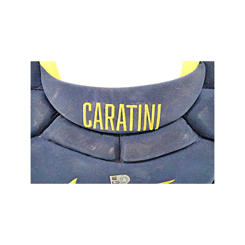 Victor Caratini Milwaukee Brewers Autographed Signed Game Used 9/27/23 Navy Chest Protector (MLB Auth) MLB Auth #YP304776-DHK Autographed has faded. Stats during game were 0 for 4.