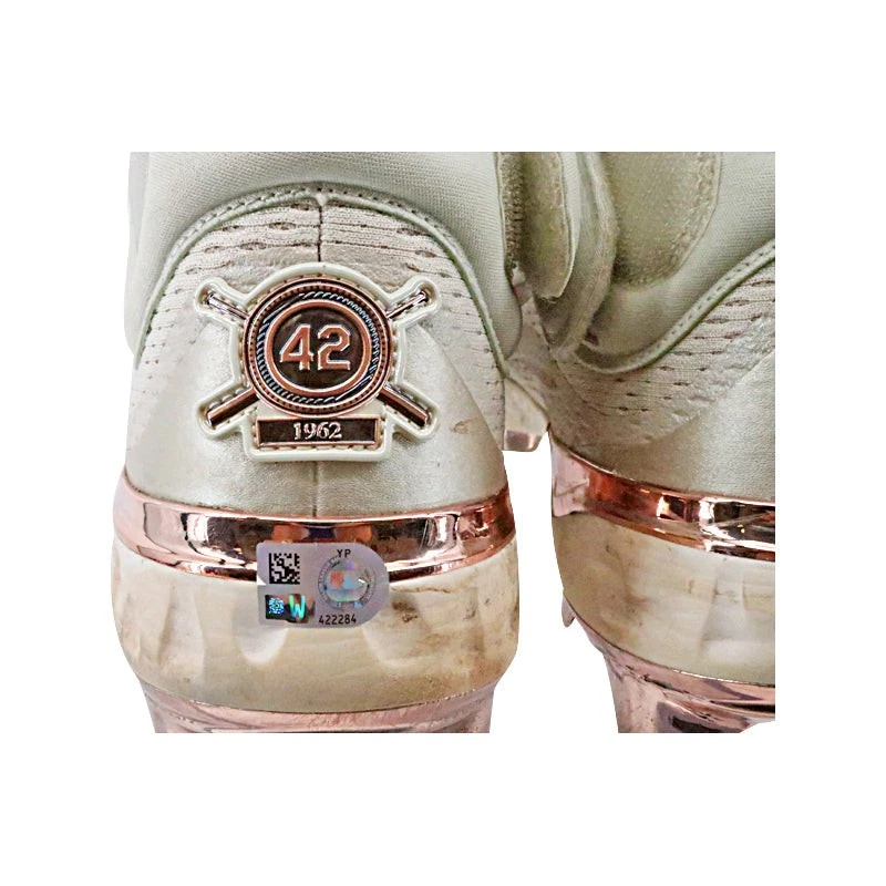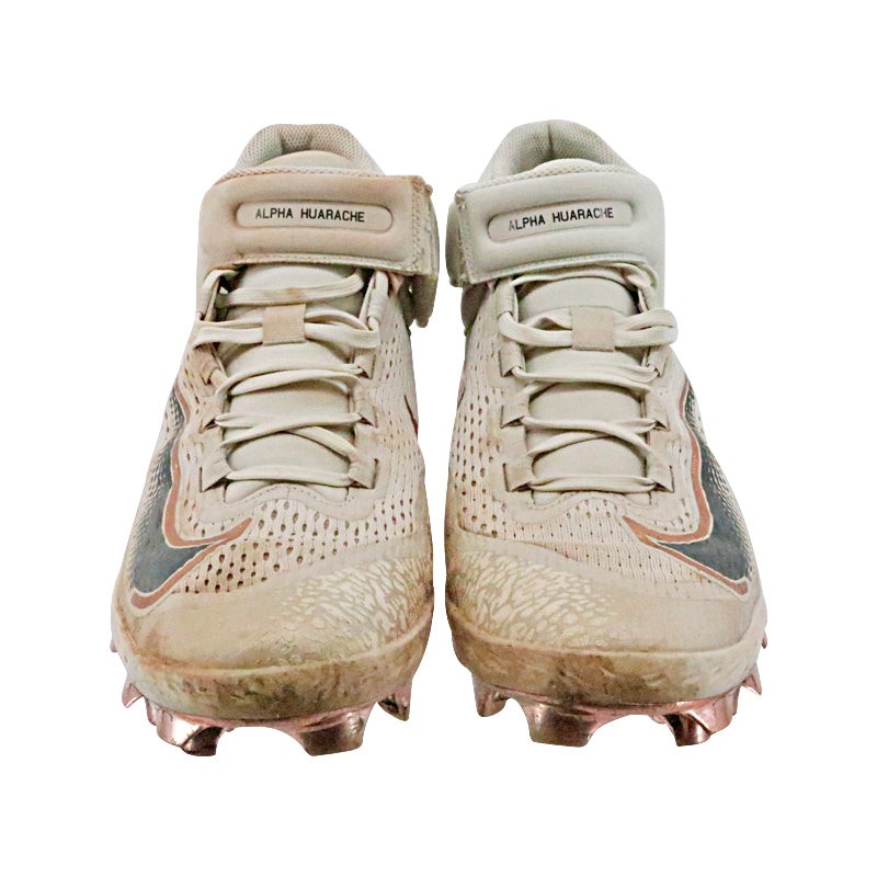 Victor Caratini Milwaukee Brewers Game Used 4/15/23 Nike Alpha Huarache Jackie Robinson Day Cleats Size 11 (MLB Auth) MLB Auth #s YP422284-JTW & YP422285-NPV. Stats during game were 4 for 4 with 1 run scored.