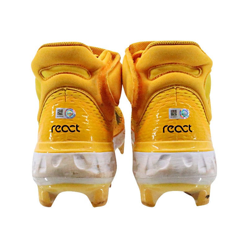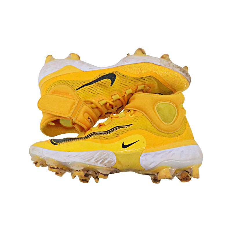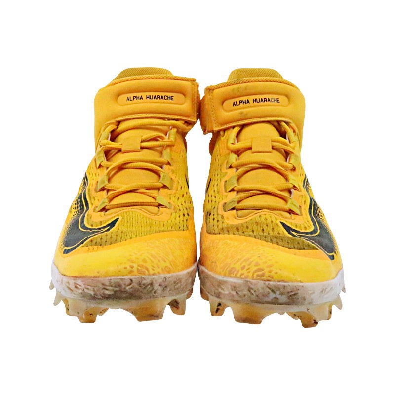 Victor Caratini Milwaukee Brewers Postseason Game Used 10/1/23 Nike Alpha Huarache Yellow Cleats Size 11 (MLB Auth) MLB Auth #s JD675310 & JD675311. Stats during game were 1 for 1 with a double.