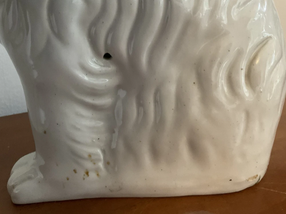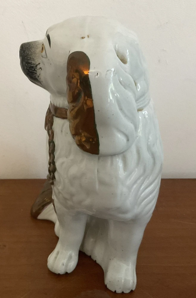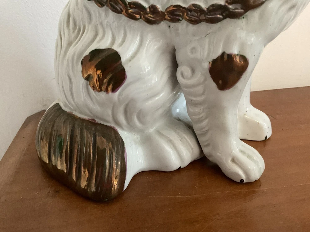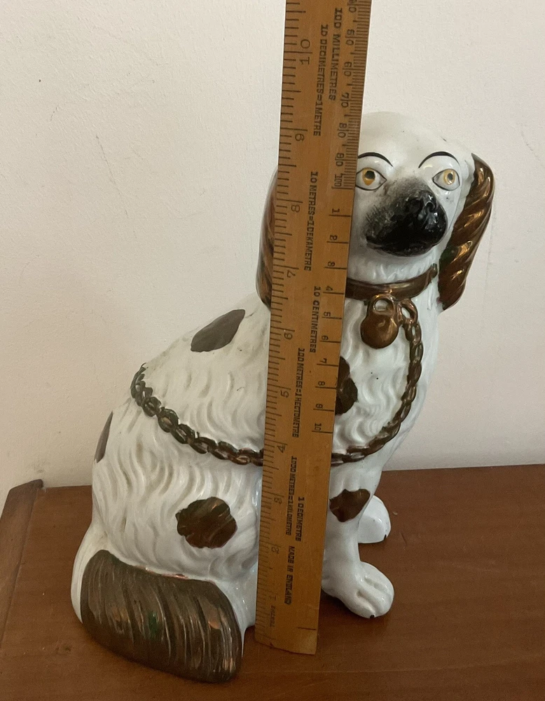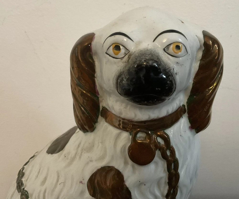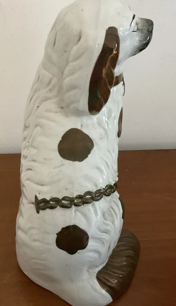 Victorian STAFFORDSHIRE COPPER LUSTRE SPANIEL DOG Split/Separate Leg Left Hand dog No cracks or chips Iconic ornament Any problems please get back to me I have a good reputation Thank you for lookingWe have moved to a smaller house and 40 years of accumulated items need to be sold in excellent condition Swift postage UK Seller see picture Thank you for looking