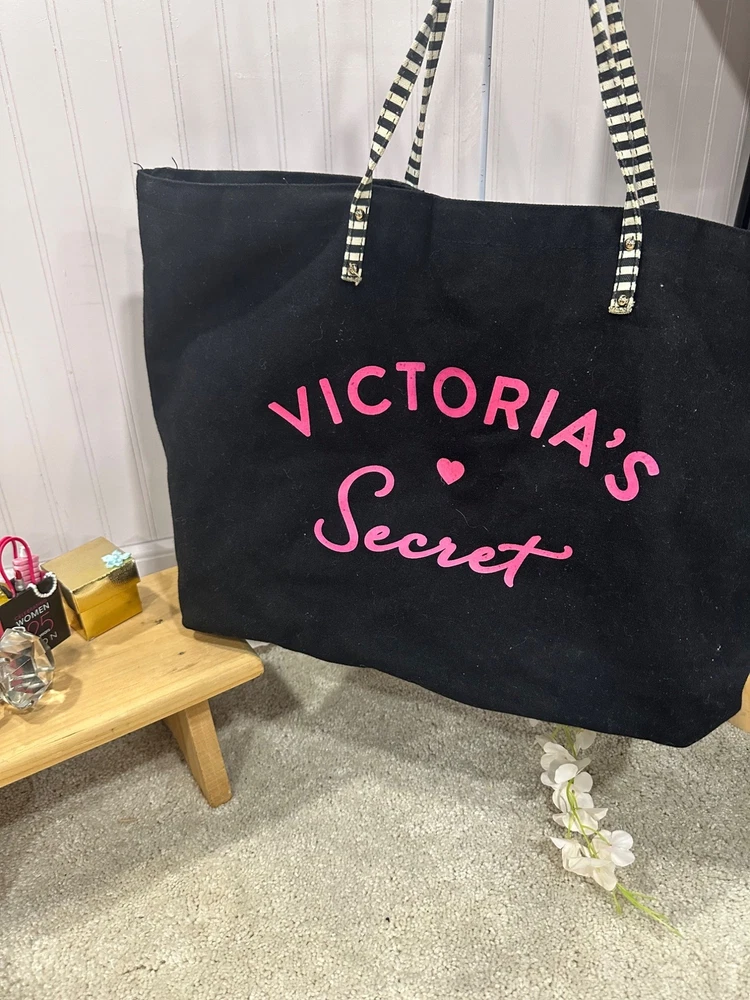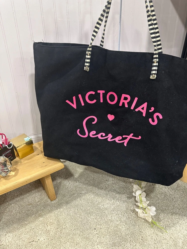 Looking for a bag that screams "I may have secrets, but my style isn't one of them?" This Victoria's Secret tote is your new sidekick. With a spacious interior, it's ready to tote your life's essentials or even hide a few secrets of your own. • Black & Pink Canvas • Striped Handles • Spacious Interior • Victoria's Secret Logo • Lightweight Design Small signs of wear on back see photos Condition: Pre-Owned Good Small signs of wear on back see photos Please see all photos as they are part of the description. Always open to reasonable offers! Jewelry is never cleaned as we want to preserve its timeless beauty and aging. Vintage items tell a story and we would like you to see that story. It also allows the new owners to clean in a way that is right for them.