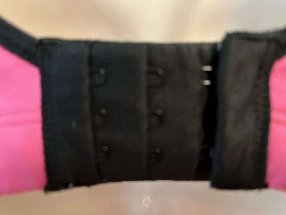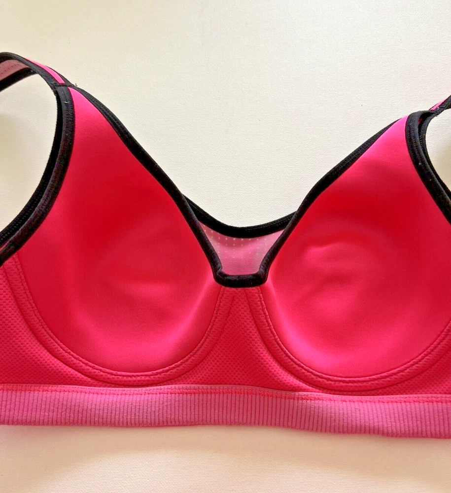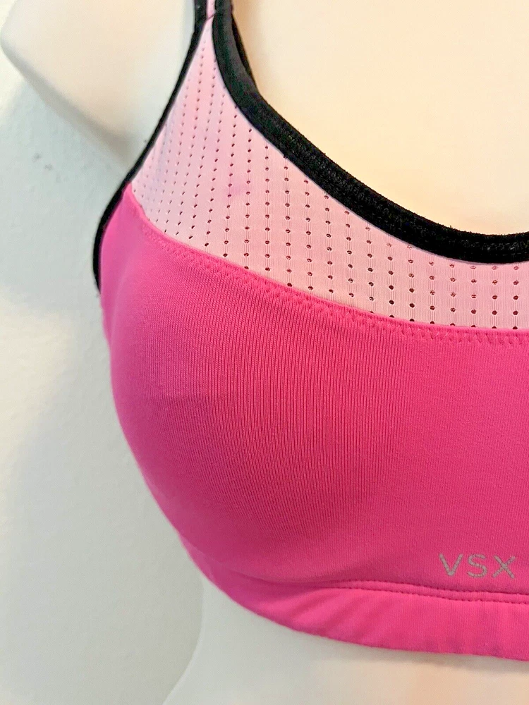 Victoria's Secret VSX sports bra 34C Hot Pink Underwire Adjustable Athletic check out my other items I have more bra's this size listed This Victoria's Secret VSX sports bra is perfect for any high-performance activity. The hot pink bra is made of a blended fabric of elastaine and nylon, making it both breathable and adjustable. The bra strap closure is a hook and eye, and the straps themselves are adjustable for the perfect fit. The full coverage cup size is a 34C and comes with underwire for added support during workouts. The back closure ensures that the bra stays in place even during the most intense gym sessions. Featuring the Victoria's Secret logo, this sports bra is the perfect addition to any activewear collection.