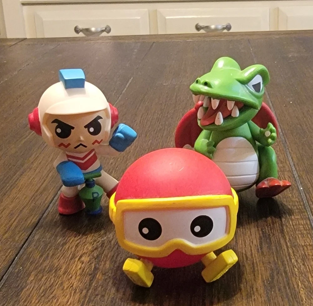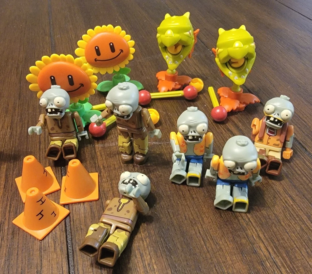 Video Game character lot featuring 8 Funko Mystery Minis Retro Video Game Series minis (QBert, DigDug, Frygar, Pooka, Pacman Ghost, Mrs. Pacman, Frogger, and Centipede), a Kid Icarus Ammibo, and a collection of Plants Vs. Zombies minis.