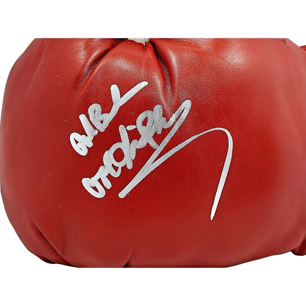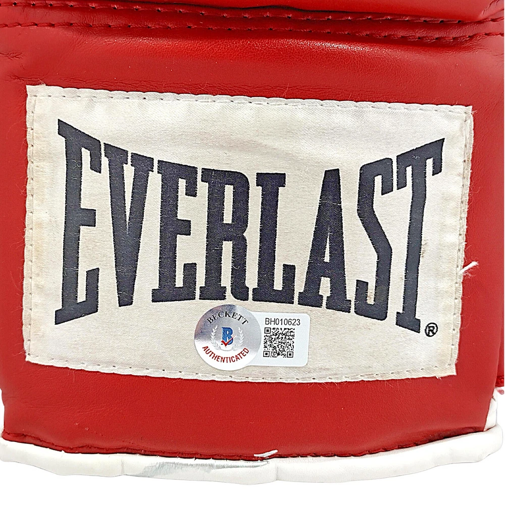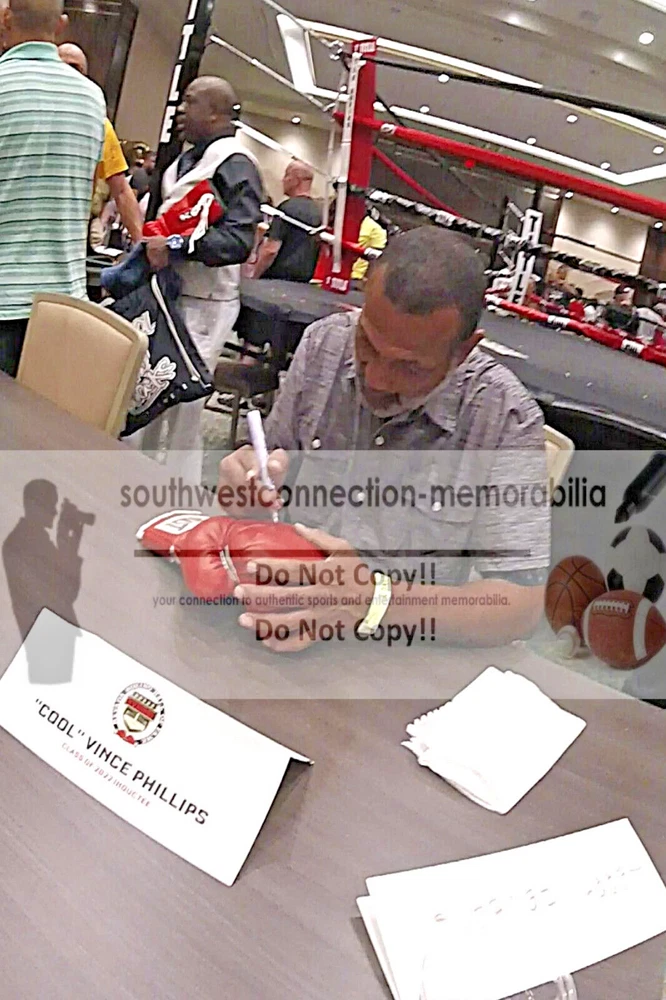 This red Everlast boxing glove has been personally autographed by Vince Phillips, the former world champion boxer. The glove has been modified with the autograph and comes with a Beckett Authentication Services (BAS) certificate of authenticity, ensuring that the signature is genuine. This is a unique and valuable addition to any sports memorabilia collection, particularly for fans of boxing. The glove is in its original condition, and is a great way to celebrate the career of Vince Phillips. Don't miss your chance to own this one-of-a-kind item! Autographed in Silver Paint Pen. Brand / Model: Everlast Boxing Glove (Size 12). 4x6 Proof Photograph of Vince Phillips signing this Exact Boxing Glove for Southwestconnection-Memorabilia, Will Be Included Free with Purchase (As Shown). This signature has been authenticated by the experts at Beckett Authentication Services. Certificate number BH010623. **Please Note: As of May 2022, Beckett Authentication Services no longer will be issuing Certificate of Authenticity cards. Please scan the QR code on the certification sticker, to confirm the authenticity, and all pertinent information, within the Beckett Authentication Database. This change will start with the certificate number sequence BF.