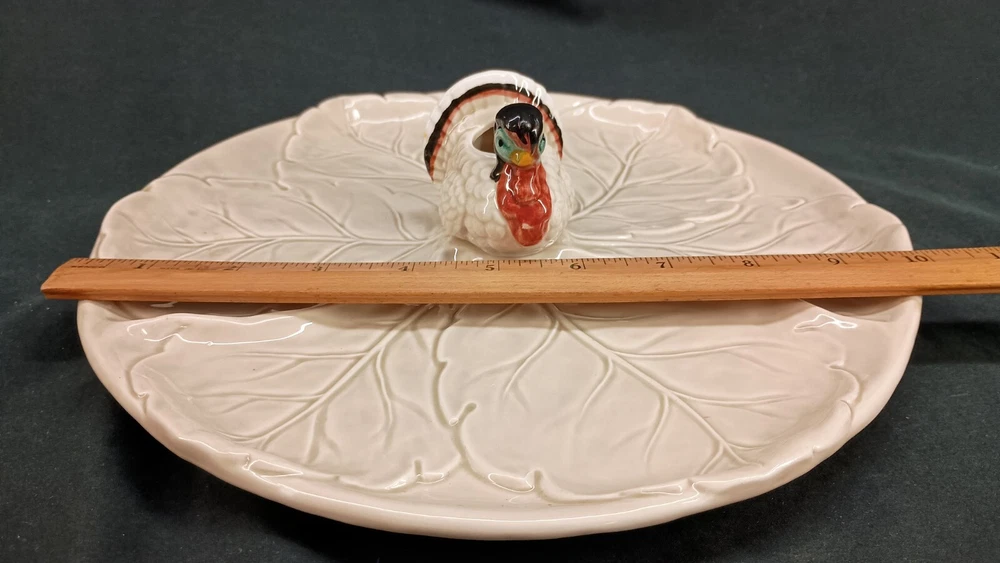 This vintage 10 inch Napcoware ceramic dish is the perfect addition to your Thanksgiving decor. The dish features a charming turkey design and comes with a tooth pick holder. It is made in Japan and is perfect for collectors of holiday memorabilia. The dish is multicolored and will add a touch of whimsy to your table. Whether you are using it to serve food or as a decorative piece, this dish is sure to impress. Thank you for visiting my listing today and thank you for your interest in this item! My goal is to have a pleasant transaction resulting in a satisfied customer. I hope any transaction between us leaves you with a feeling of confidence knowing you can trust me and the items I offer here. *Most if not all my listings are set to accept offers. Feel free to send an offer and I will be happy to consider it!! *Please contact me with any questions or concerns and I will be happy to help. *Always examine the photos carefully, and if in doubt, email me with any questions you may have. *Please note that condition statements are offered as a guide only. They will always be somewhat subjective and reflect our opinion, which may not necessarily agree with someone else's opinion. PLEASE READ: I aim to please and I want my buyers to have a positive transaction with me. If you have questions, concerns, or special requests related to any of my items I hope you will contact me so we can work them out to your satisfaction. I sell my items to give you a great item at a decent price while making a little profit at the same time. If you feel the item you are interested in is too pricey do not hesitate to send me a fair offer and I will consider it. My goal is to satisfy your needs and mine so both parties can benefit. SHIPPING: If you prefer a different shipping method or company please contact me and I will do all I can to make that happen. If you have concerns or requests about the packaging of your item contact me and I will do all I can to accommodate them. Shipping costs are based on location in each state or country, the costs always differ. After I have received your payment I will ship your item out within 3 business days or less excluding weekends and holidays. BEFORE PURCHASING & BIDDING: **Please see all the pictures. I do not have great photography skills but I try to get the most accurate photos I can. If you are unsure about something you see in a photo contact me so I can do what I am able to answer your concern about the item. **I cannot stress enough that if you have any questions or concerns please contact me before purchasing and bidding. Communication can solve so much. **As a customer myself, I understand the meaning of customer satisfaction and my goal is to have nothing but satisfied customers. If you are not unsatisfied with your purchase I ask that you please contact me so I can take care of your issue. My goal is for you to be 100% satisfied. INTERNATIONAL BUYERS WELCOMED - PLEASE NOTE: I welcome International buyers! Please be aware that any custom/duties/taxes that the parcel might incur once it is out of the USA are the responsibility of the buyer. Please check with your country's customs office to determine what these additional costs will be prior to bidding or buying. Please refer to the eBay Site Map for more information if needed.