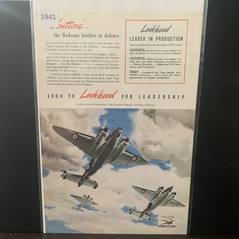 Vintage 1941 Lockheed Hudson’s Brother Ad Advertisement