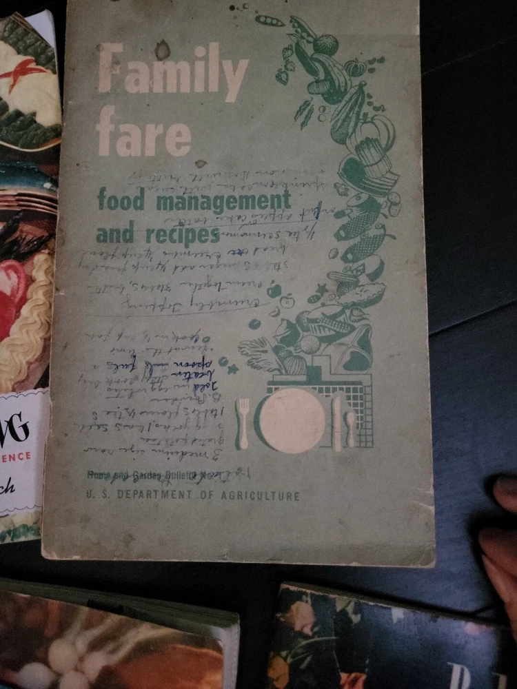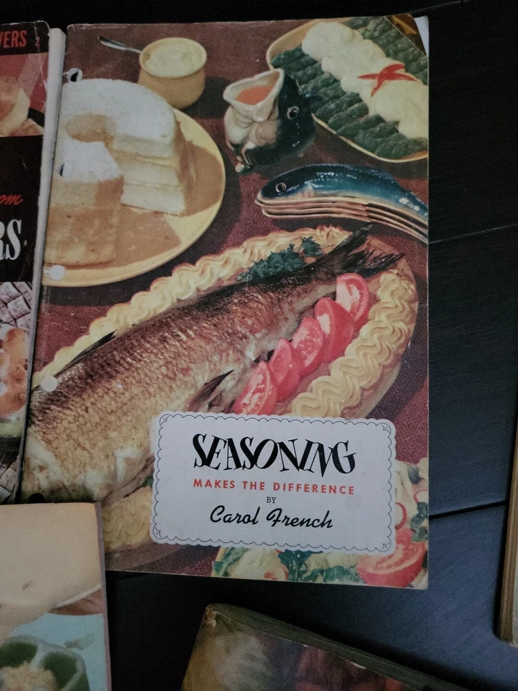 Lot of 7 recipe books. 1.Presto Cooker recipe book 2.Bake the No-Knead Way 3.Carnations Failure-Proof recipes 4.How To Cook Meat book by Rochester Gas & Electric Service 5.Family Fare by U.S. Dept of Agriculture 6.Seasoning Makes the Difference By Carol French 7. 500 delicious dishes from Leftovers(cover torn)