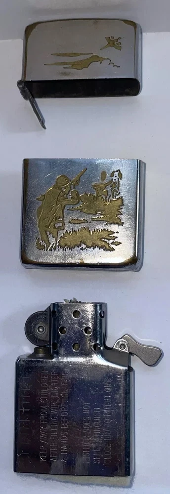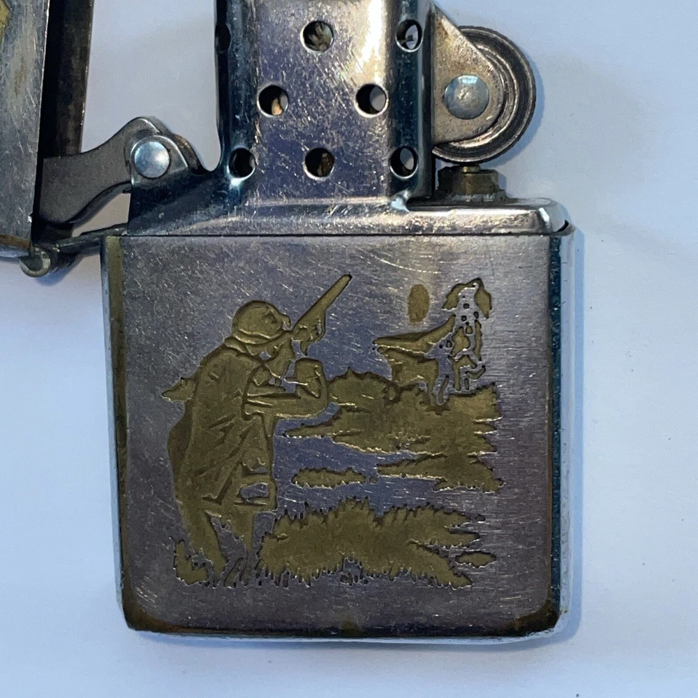 Up for sale is a Vintage Zippo Lighter Bird Hunting with Zippo Insert, long hinge. Sold as is, does not light but I didn’t fill with fluid. Has an inscription on back. Top separated from bottom. Vintage condition. Please inspect the photos and email with any questions. Thanks for looking!