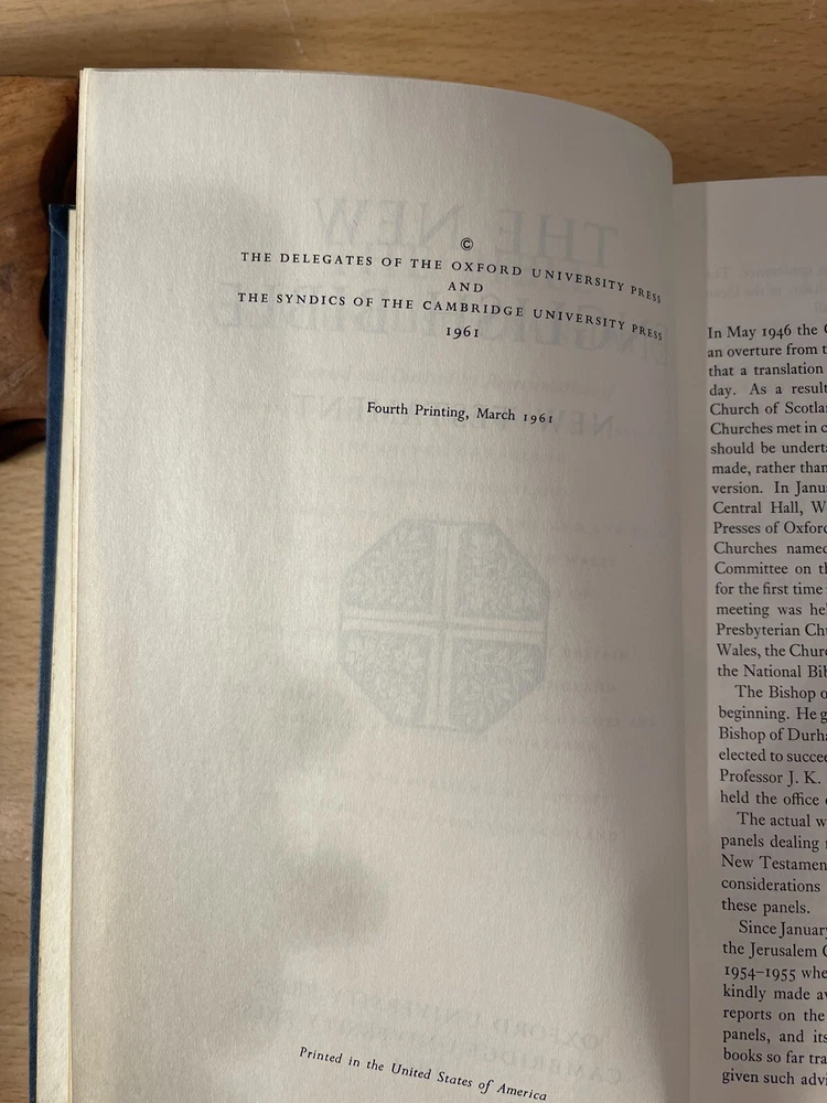 Vintage 1961 The New English Bible New Testament Oxford Cambridge Hardcover