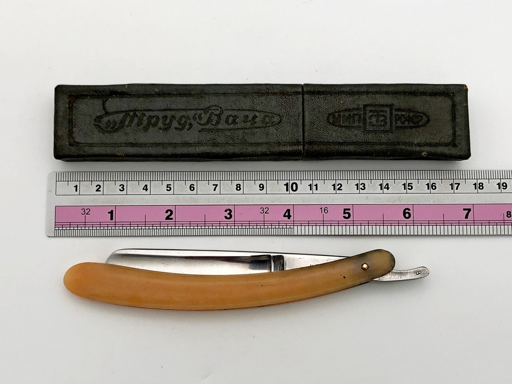 Trud Vacha Volga 1965 Vintage Straight Razor ZTV Soviet Barber Tools USSR Retro Razor Volga in Box Trud Vacha. Yellow Handle. This vintage straight razor has been sharpened, honed, and prepared for shaving. The blade has been maintained to ensure smooth performance while keeping its original character. Could be a great gift for someone you love or can be added to your collection. Contact me if any questions. I do offer combine shipping discount if you buy 2 items or more. I make shipments the next business day after the purchase. Buyer protection is in effect. Please watch the photos carefully as they are important part of description. Thanks for your interest. Have a look at some other lots at our store. 💛💙