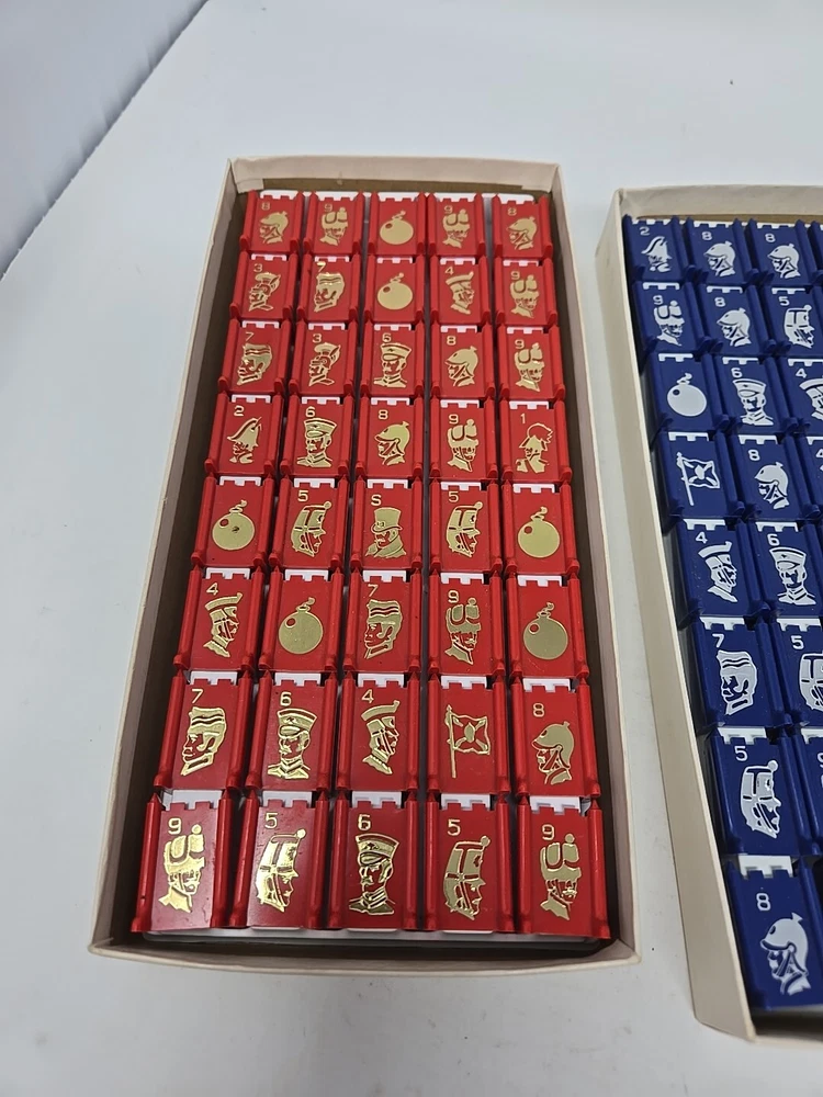 This vintage 1970 Stratego replacement game pieces set is perfect for any board game enthusiast. The pieces are made by Milton Bradley and are suitable for 2 players or more. The game title is Stratego, and it is a strategy game that is award-winning for players aged 8 and up. The set includes various pieces that are perfect for replacing old or lost pieces in your Stratego game. The game is set in the 1970s, and the pieces are designed to fit perfectly with the game's theme. The set is ideal for collectors or players who want to enhance their Stratego gaming experience.
