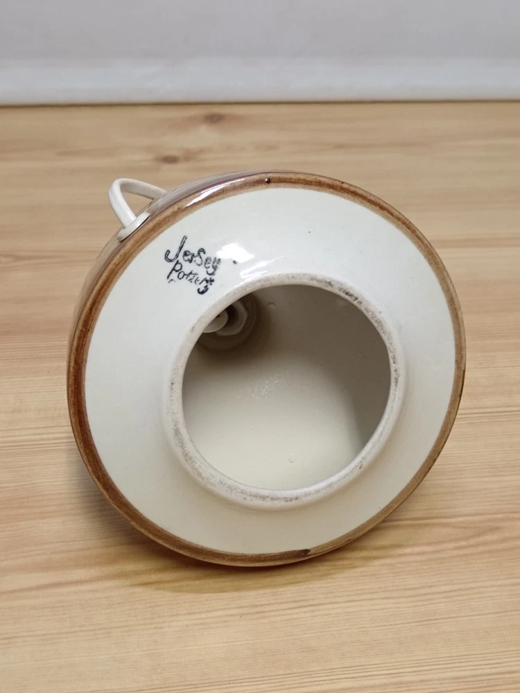 Vintage 1970s Jersey Pottery Lamp Base Foral Leaf Pattern. - Tested & Working. Great Condition with no damage. 7.5" total height and 5.5" in diameter. Please look at the pictures for full condition and what you will receive.