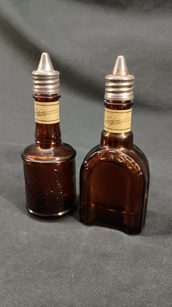 Add a touch of vintage to your collection with this set of 2 empty Stetson Cologne bottles. The amber glass bottles are adorned with a glossy finish and metal caps, making them perfect for display in any room. These collectible bottles are suitable for all occasions and are sure to be a great addition to your decorative collection. The bottles are 2 inches in length and 5 inches in height, with a weight of 6 ounces. They were manufactured in 1981 and are an original item from the Stetson collection. The closure type is a screw and the packaging is unboxed. The brown color of the bottles and the all-over pattern make them a great fit for any decor. Thank you for visiting my listing today and thank you for your interest in this item! My goal is to have a pleasant transaction resulting in a satisfied customer. I hope any transaction between us leaves you with a feeling of confidence knowing you can trust me and the items I offer here. *Most if not all my listings are set to accept offers. Feel free to send an offer and I will be happy to consider it!! *Please contact me with any questions or concerns and I will be happy to help. *Always examine the photos carefully, and if in doubt, email me with any questions you may have. *Please note that condition statements are offered as a guide only. They will always be somewhat subjective and reflect our opinion, which may not necessarily agree with someone else's opinion. PLEASE READ: I aim to please and I want my buyers to have a positive transaction with me. If you have questions, concerns, or special requests related to any of my items I hope you will contact me so we can work them out to your satisfaction. I sell my items to give you a great item at a decent price while making a little profit at the same time. If you feel the item you are interested in is too pricey do not hesitate to send me a fair offer and I will consider it. My goal is to satisfy your needs and mine so both parties can benefit. SHIPPING: If you prefer a different shipping method or company please contact me and I will do all I can to make that happen. If you have concerns or requests about the packaging of your item contact me and I will do all I can to accommodate them. Shipping costs are based on location in each state or country, the costs always differ. After I have received your payment I will ship your item out within 3 business days or less excluding weekends and holidays. BEFORE PURCHASING & BIDDING: **Please see all the pictures. I do not have great photography skills but I try to get the most accurate photos I can. If you are unsure about something you see in a photo contact me so I can do what I am able to answer your concern about the item. **I cannot stress enough that if you have any questions or concerns please contact me before purchasing and bidding. Communication can solve so much. **As a customer myself, I understand the meaning of customer satisfaction and my goal is to have nothing but satisfied customers. If you are not unsatisfied with your purchase I ask that you please contact me so I can take care of your issue. My goal is for you to be 100% satisfied. INTERNATIONAL BUYERS WELCOMED - PLEASE NOTE: I welcome International buyers! Please be aware that any custom/duties/taxes that the parcel might incur once it is out of the USA are the responsibility of the buyer. Please check with your country's customs office to determine what these additional costs will be prior to bidding or buying. Please refer to the eBay Site Map for more information if needed.