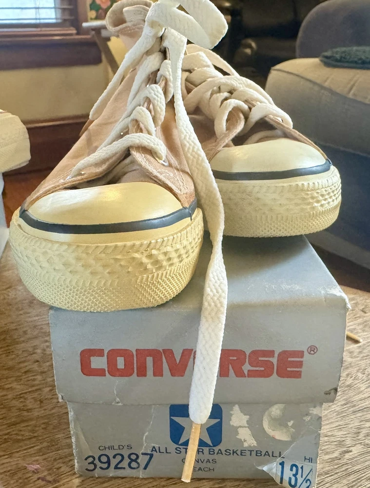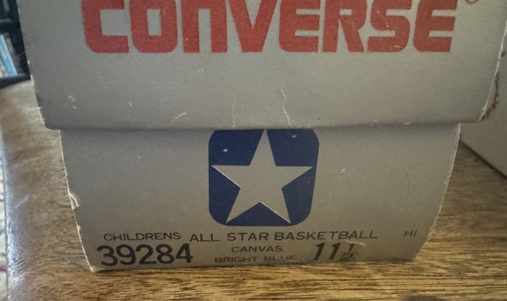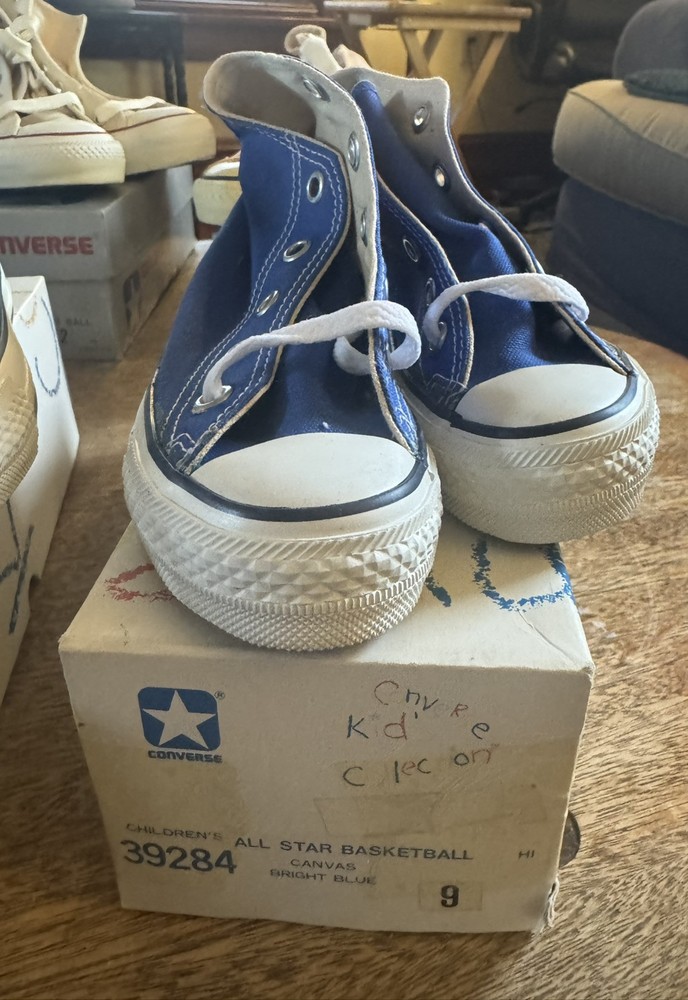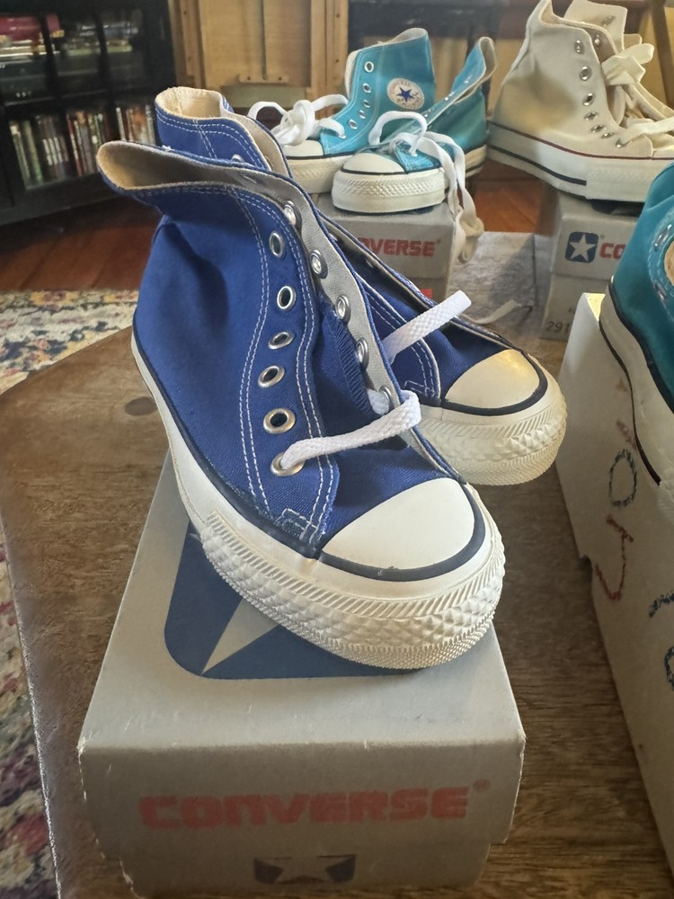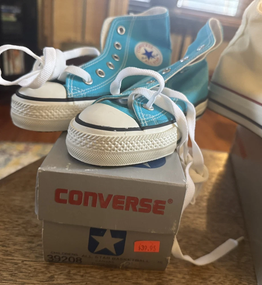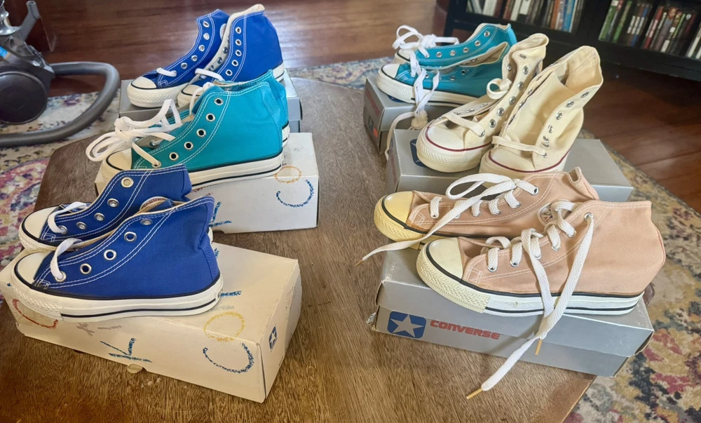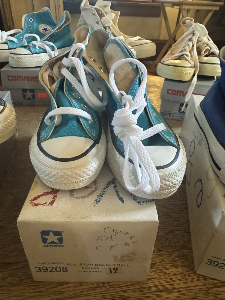 Here we have a lot of 6 pair of converse chucks in kids sizes. All NOS with boxes. They are all made in Korea. See photos! Thanks!
