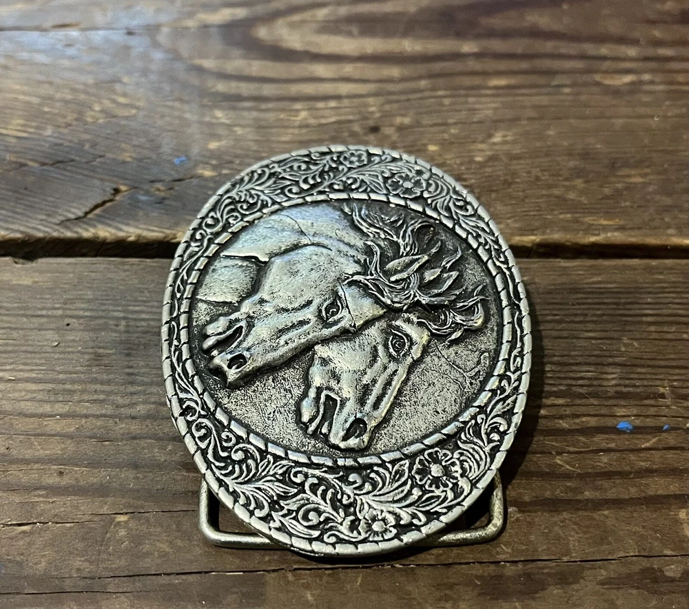 Add a touch of vintage to your wardrobe with this unique Indiana Metal Works Horse Belt Buckle. Crafted from durable metal, this buckle features a stunning horse design that is perfect for animal lovers and collectors alike. The intricate details bring this piece to life, making it a standout addition to any outfit. This vintage buckle is perfect for those who appreciate the art of animal-themed fashion. The belt is not included, but it is compatible with most belts for a versatile look. Ideal for collectors, this buckle is a rare find that is sure to impress. Add it to your collection today and take your style to the next level!