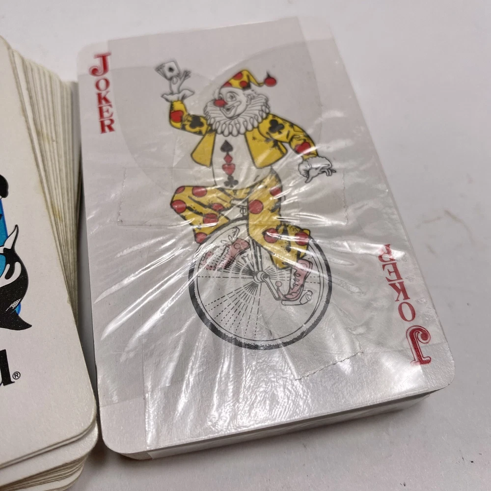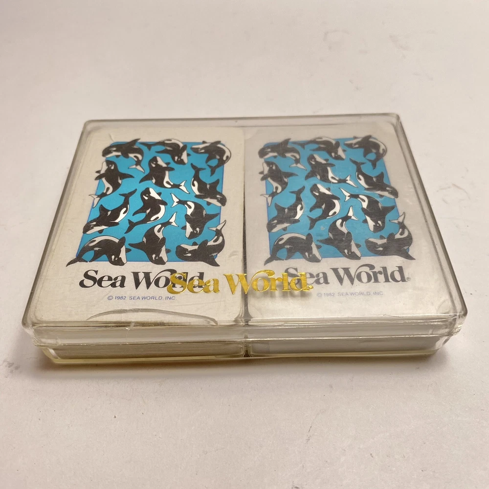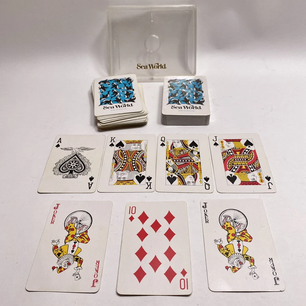 One is a complete 52 card deck plus 2 jokers. The second deck is still sealed. Top of clear case has a crack as pictured. Photos show the actual items you will receive.