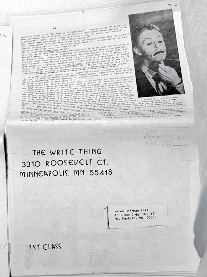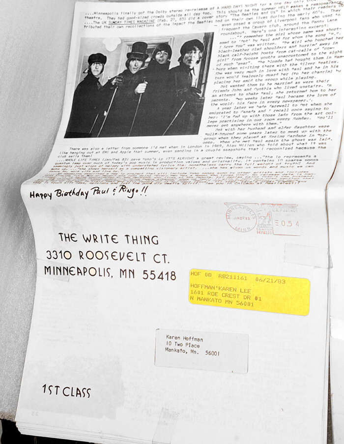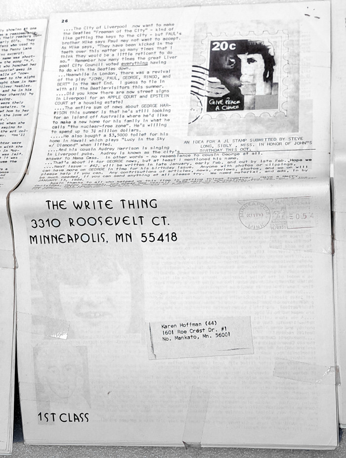 Lot of Three (3) THE WRITE THING Vintage Beatle Fanzines. #40, 41 and 42. Published by Barb Fenick, Minneapolis, MN. When folded out fanzines measure 8 ½” x 14”. They are as follows: 1. THE WRITE THING Issue #40 June/July 1983. Features Paul McCartney on cover. 26 pages. 2. THE WRITE THING Issue #41 Oct/Nov 1983. Features John Lennon on cover. 26 pages. 3. THE WRITE THING Issue #42 Feb/March 1984. Features Beatles 20th Anniversary of coming to America on cover. 26 pages. Items are from my personal collection and they come with address labels on them. Some aging to paper. No loose pages to magazines; solid. They are being offered, “As Is”. PLEASE NOTE: Please forgive the Lighting. I do my best to describe the item as well as possible. In the event item does not arrive to you as described, Please contact me before leaving a Feedback. --------------------------- Buyer pays Actual Shipping plus $0.60 Packaging Fee. Sorry, No Local Pickups. Shipping weight approximately 0 pounds 11 ounces. All communications must be in English. Items are packaged prior to Listing, Therefore No Combined Shipping. --------------------------- If I do not receive a response from the winning bidder after one week, the item will be re-listed. Please contract us if you have any questions. Thank you for your consideration. ZDZZ 250509 12x9x2 KLH0105
