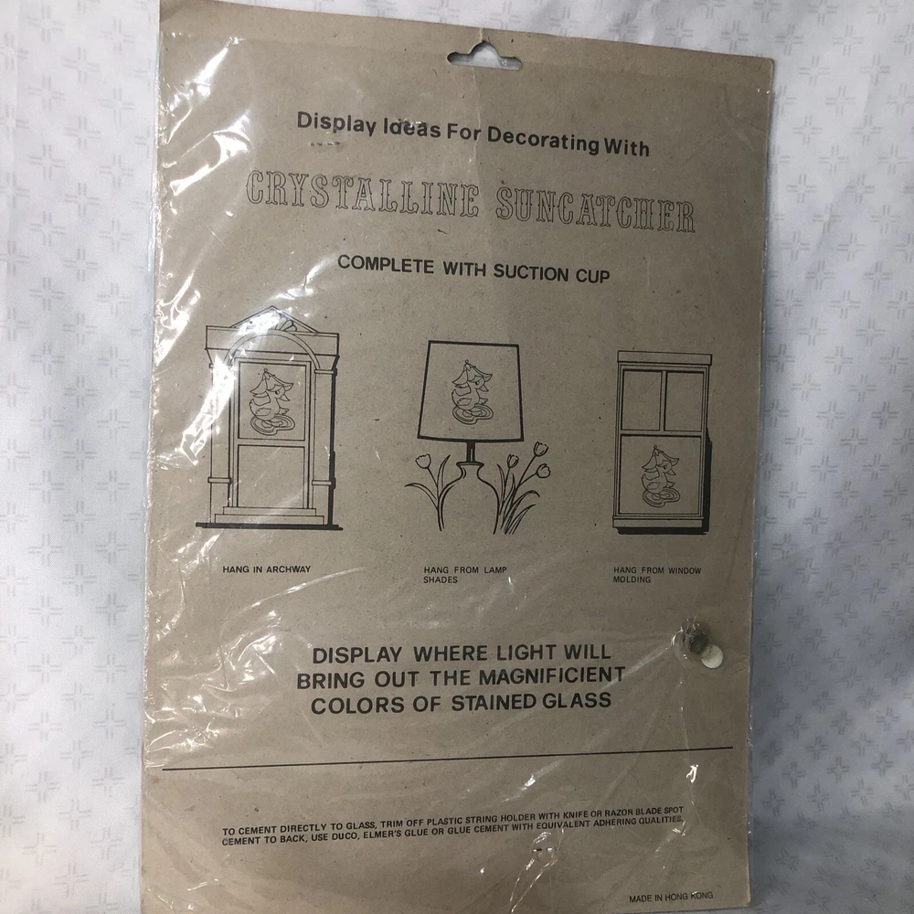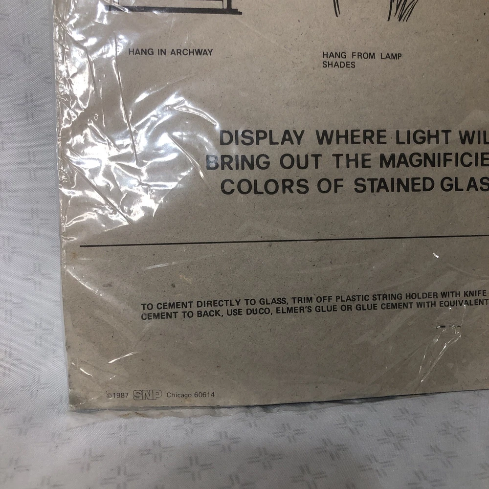 Add a touch of vintage charm to your home decor with this Tiffany-Like Duck Sun Catcher from 1986. This decorative suncatcher features a beautiful design that is sure to catch the eye of anyone who sees it. It is perfect for adding a cozy and welcoming atmosphere to any room in your home. Crafted with care, this suncatcher is a great addition to your collection of decorative accessories. It is a perfect gift for your loved ones or a nice treat for yourself. The duck design is whimsical and playful, making it a great addition to any space. This suncatcher is a great way to bring a touch of nature into your home. ** as seen in photos ,, yellow is faded in the duck design.