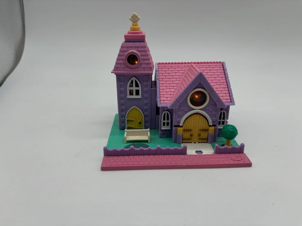 Vintage 1993 Bluebird Polly Pocket Wedding Chapel w/4 figures- both lights work some basic play wear- but everything looks good. lights will flicker a little- but they work Perfect decor for a Man Cave, office or bookshelf. Great Birthday, Holiday or Anniversary gift for a Dad, Father-in law or Brother or any child of the 80s or 90s. Shipping is economy to keep your costs down--if you would like faster- just let me know and I will adjust the price. Economy shipping to US only. As always, happy to combine shipping on multiple items. If you would like to upgrade or add signature, please request at time of purchase and I'll adjust and invoice you. Sold as is -so please ask questions now. I accept returns with buyer paid shipping within 30 days, if the item is in proper condition. .I'll do my very best to answer anything! All toy sales are intended for adult collectors. If a toy is sold in the box and packaging is sealed- that is a term of the condition of the toy and directly affects it's value as a collector. I cannot process returns if you open a boxed and sealed toy, their intent being sold is a collectable that is still in the box. If the factory box seal is broken / opened by the buyer - a return cannot be processed as it cannot be returned in the condition it was sold. Toys still in the sealed box with electronic parts or factory batteries may not work, if the battery has died. There is no way to test without breaking the seal. Returns cannot be processed for non working electronics, if the box seal has been broken. These toys may have sharp edges or digestible parts unsafe for young children. Please buy with the expectation of collectables not toys to play with when it comes to returns.