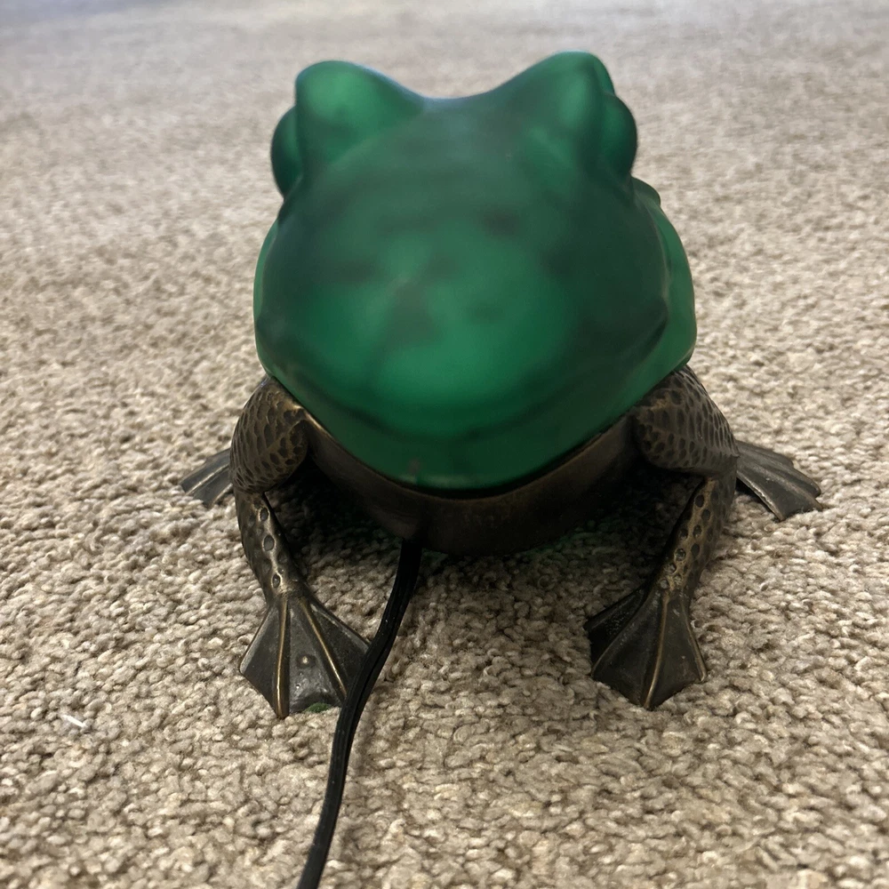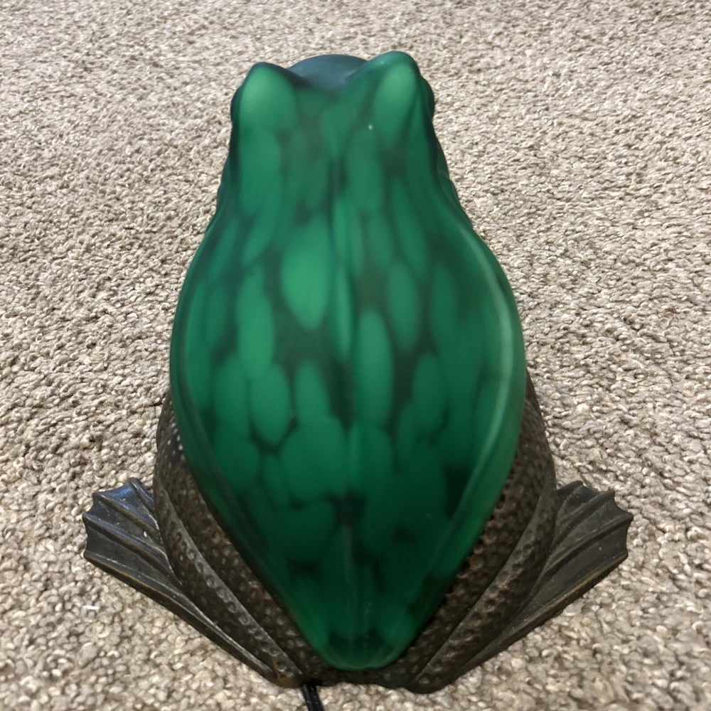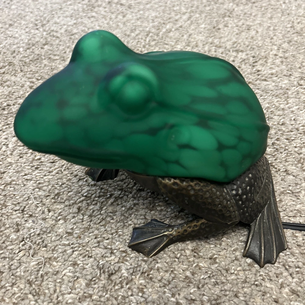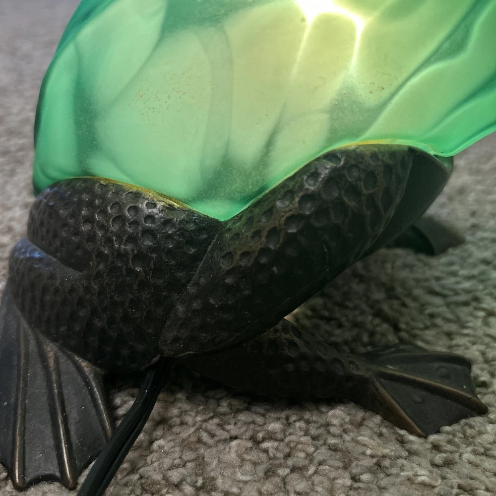 Illuminate your space with a touch of whimsy using the Vintage 1996 C. Sadek Green Glass and Brass Electric Lamp. Perfect as a nightlight or a quirky desk lamp, this charming piece features a novelty design that's sure to spark conversations. Crafted from a combination of glass and solid brass, it exudes an Art Deco style that effortlessly blends with both contemporary and traditional décor. The lamp comes in a rich green hue, complemented by a coordinating black cord, and is ready to be a functional vintage accent in your home. Designed for everyday use, it offers a warm glow with a simple switch control. Ideal for all age groups, this original 1990s creation by Andrea by Sadek is a delightful nod to the past, ready to brighten your nights or add a nostalgic touch to your living space.